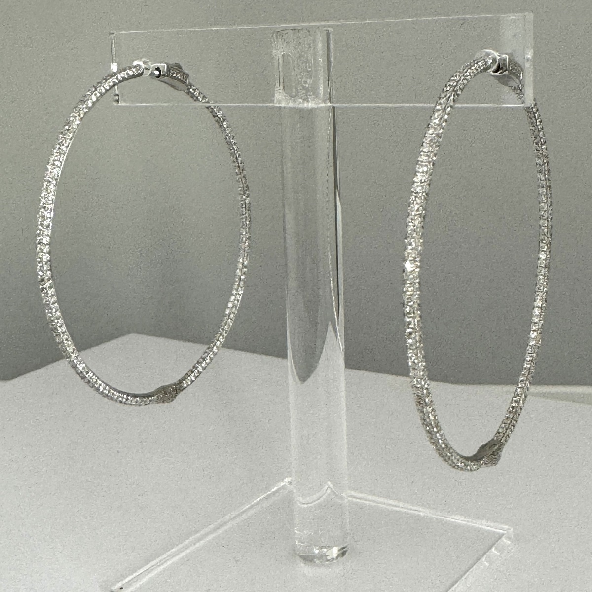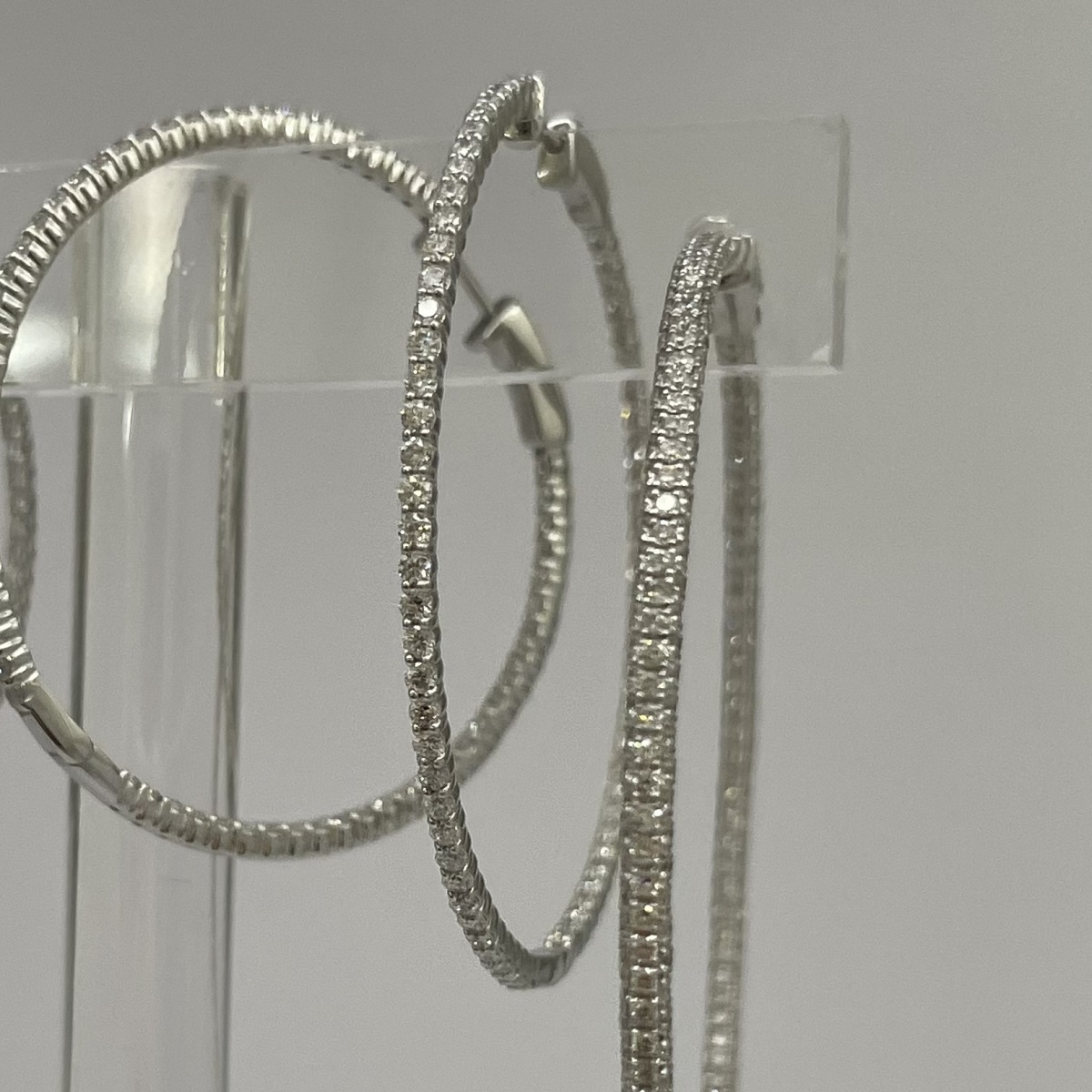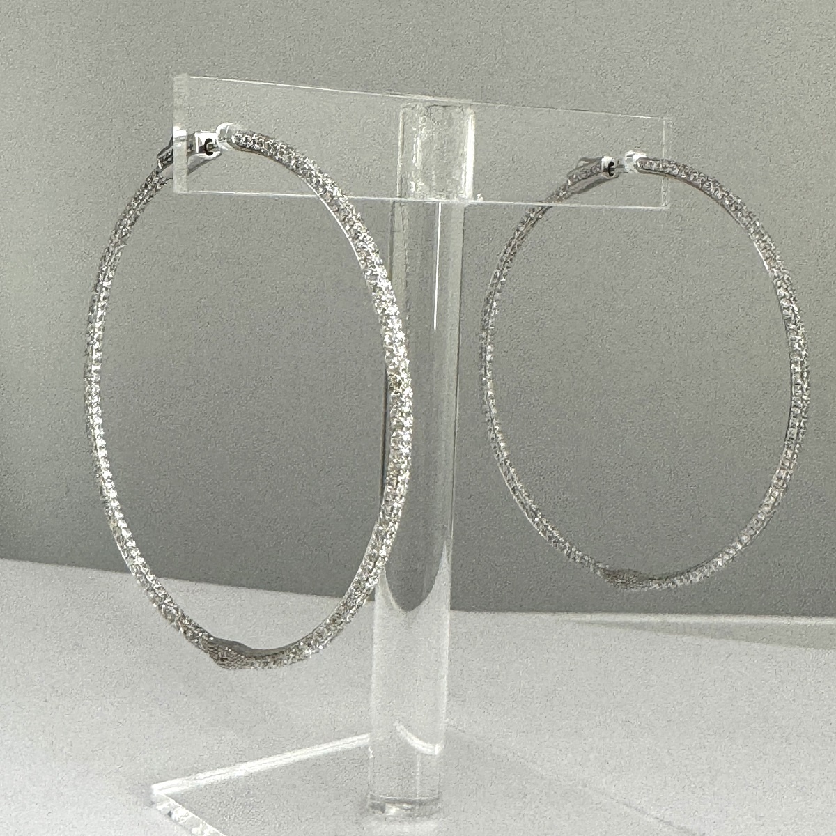 14k White 2.25 Inches Glittering Diamond 2 Inch Hoop Earrings 2457-23