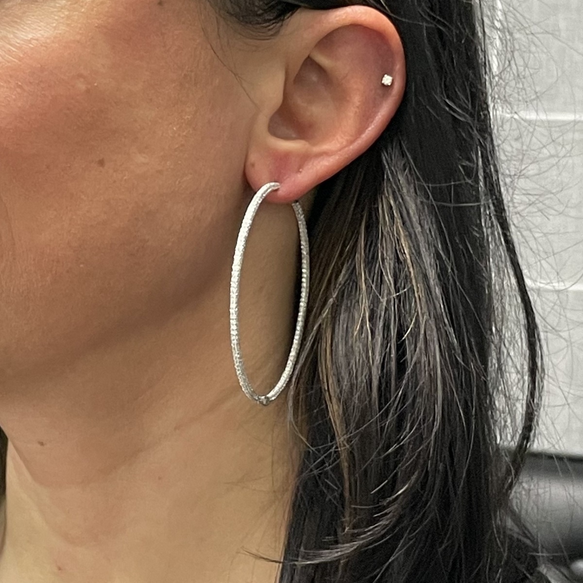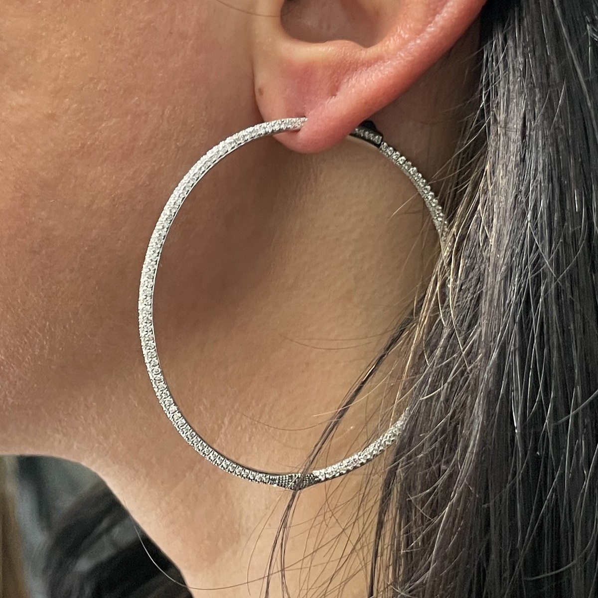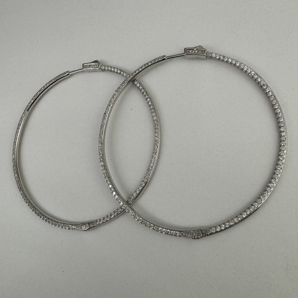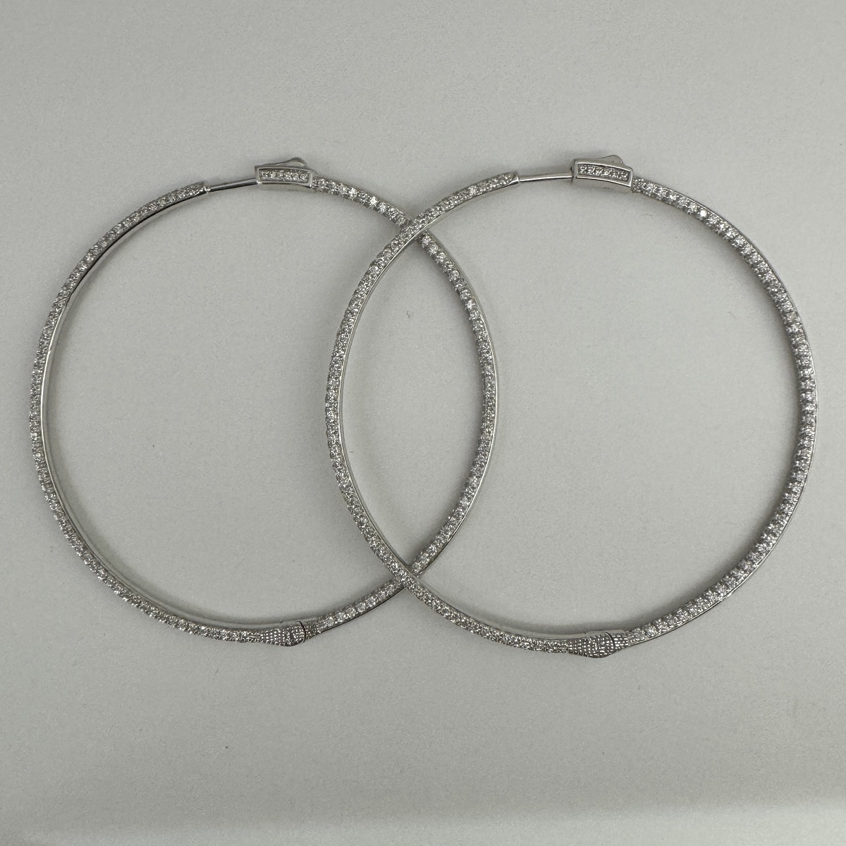 14k White 2.25 Inches Glittering Diamond 2 Inch Hoop Earrings 2457-23