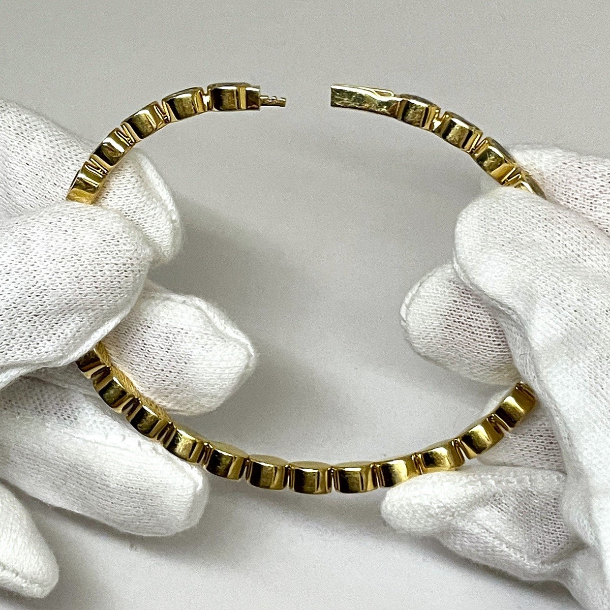 Crafted in luxurious 18k yellow gold, this piece blends classic sophistication with a contemporary edge. The alternating oval bezels lend a rhythmic charm, making it a stunning standalone statement or a radiant addition to your favorite stack.