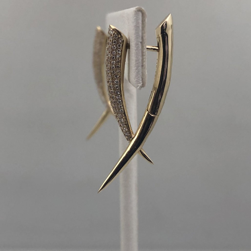 Tags Dangle Earrings, diamond horn dangle earrings, horn shaped, yellow gold