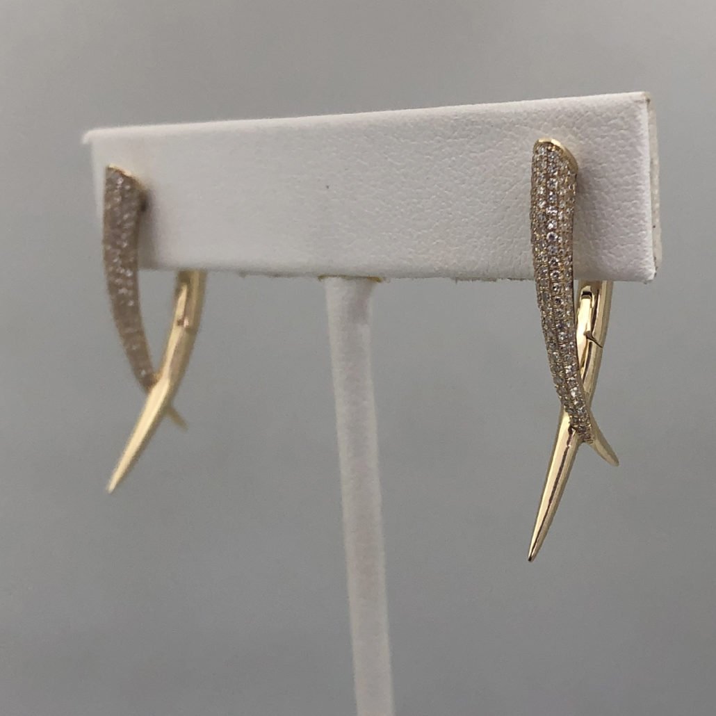 Tapered horn shaped dangles are joined at the post. The smaller horn is diamond encrusted.