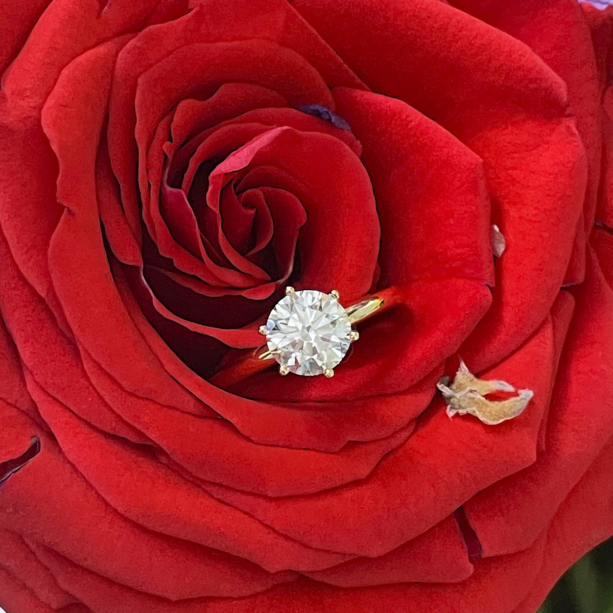 The clean lines and elegant proportions of this ring allow the diamond’s fire and beauty to take center stage.