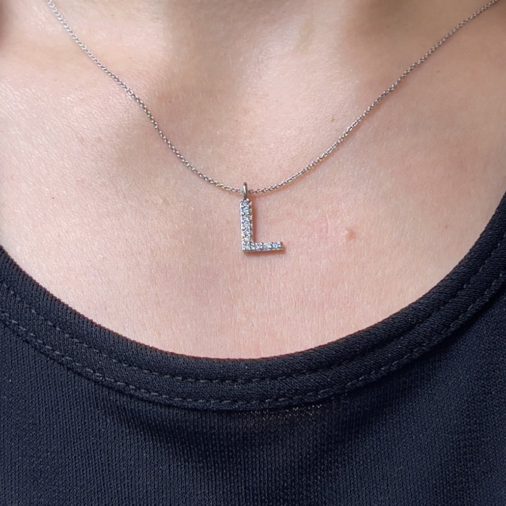 Initials are a great way to give a personalized, fashion forward gift! Made to order – ask for the letter you need. Price may vary by letter. Also available in Yellow Gold.