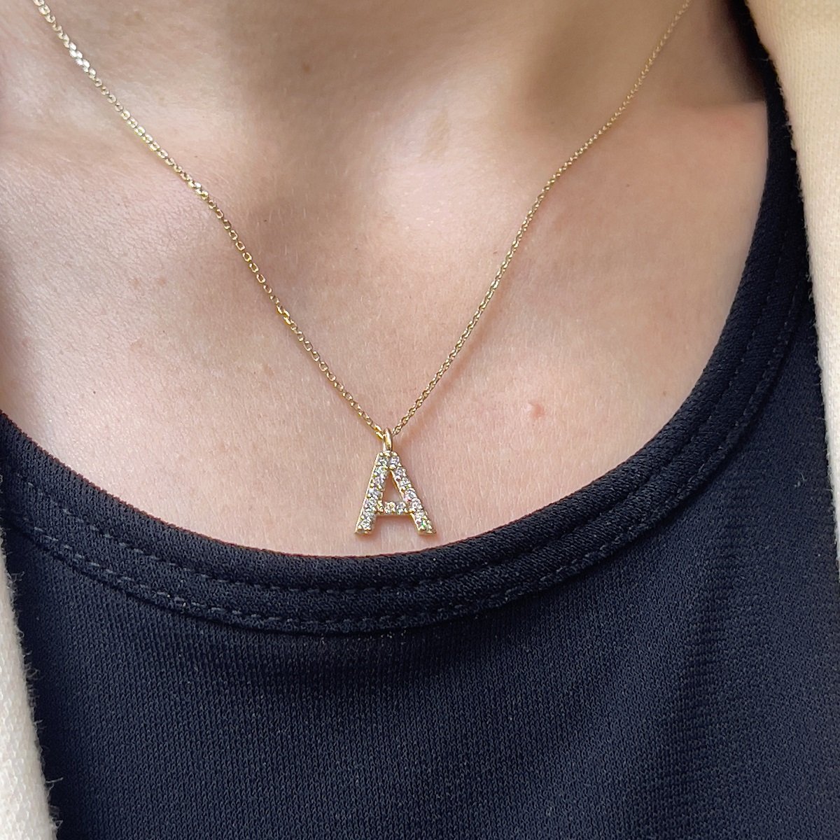 Initials are a great way to give a personalized, fashion forward gift!  Made to order – ask for the letter you need.  Price may vary by letter.  Also available in White Gold.