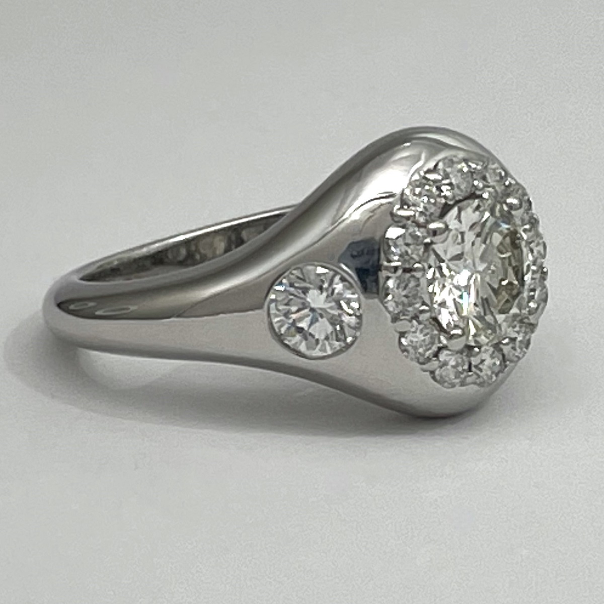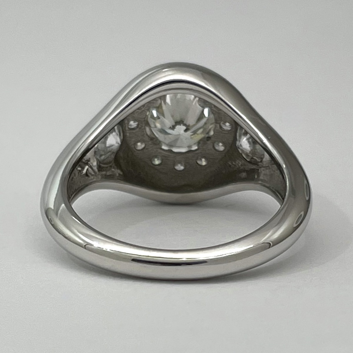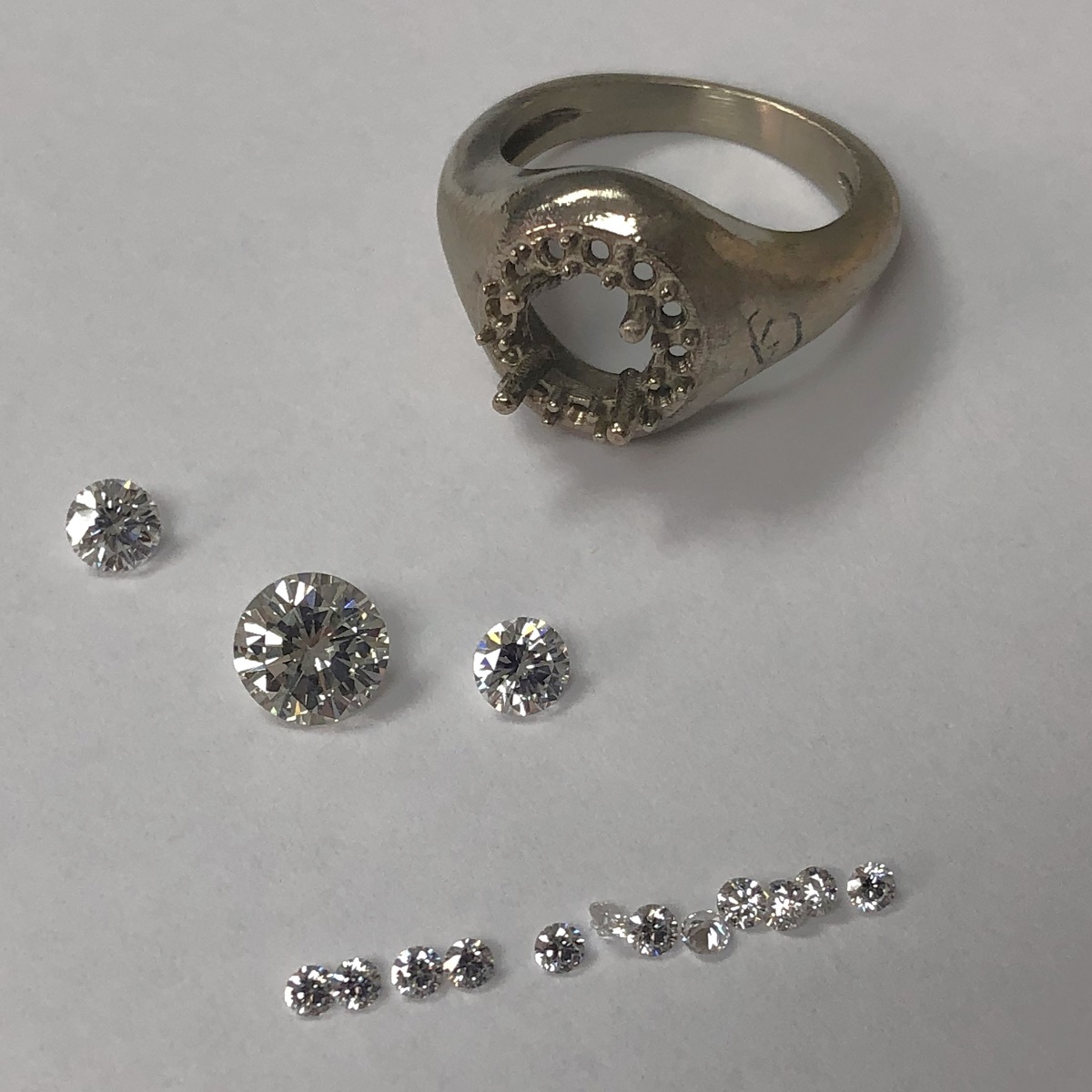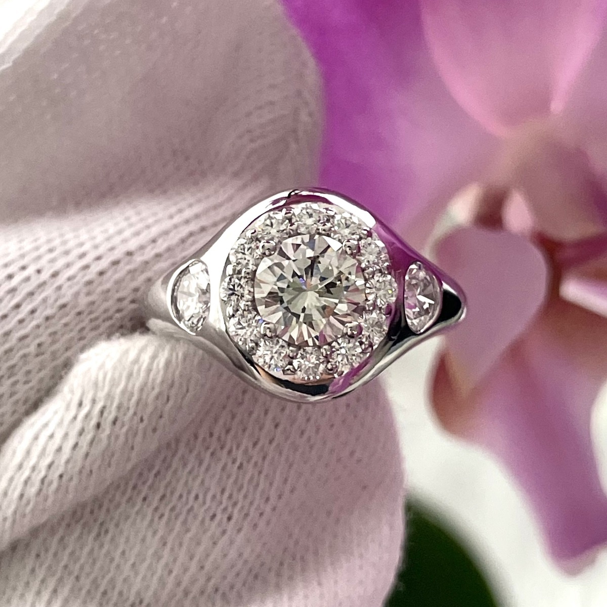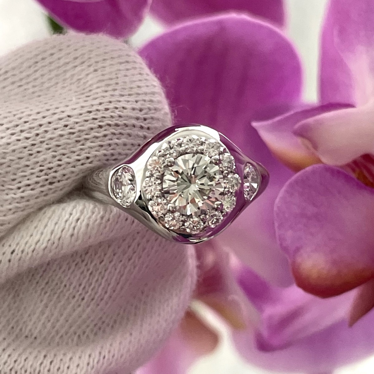 This ring is made with 14k white gold and natural round brilliant diamonds that are prong set and bezel set.