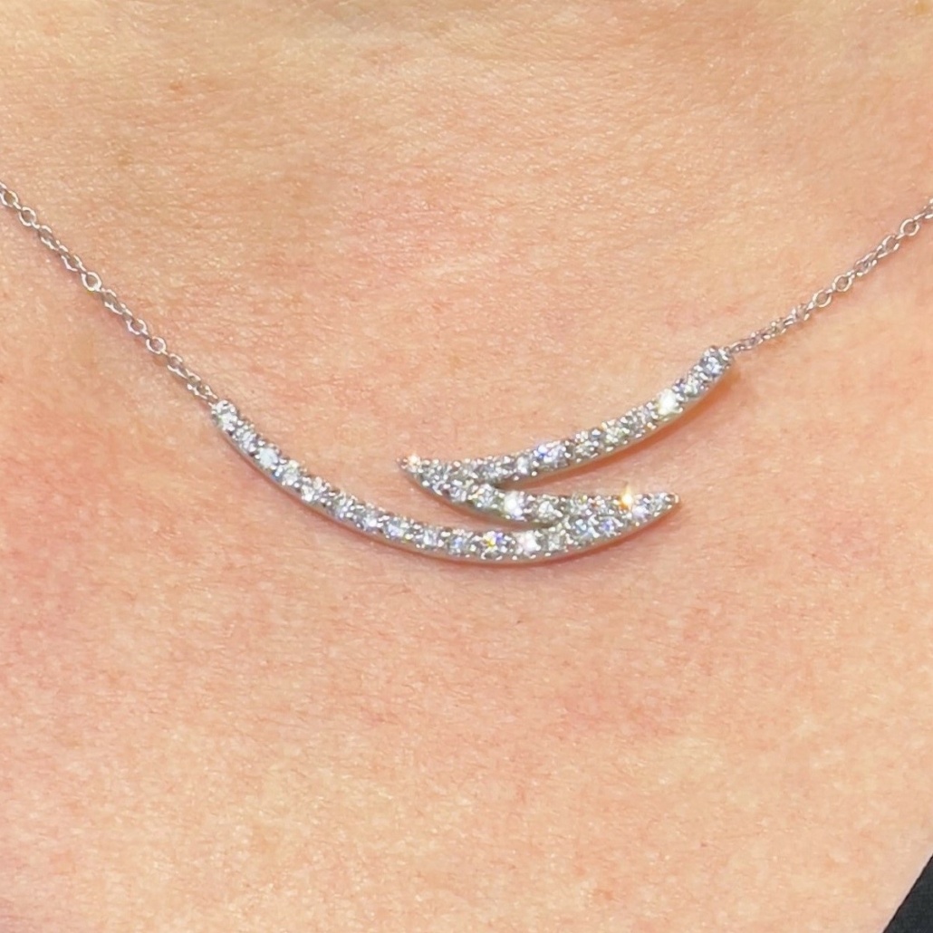 14k White Gold Lightning Shape Necklace, With Prong Set Diamonds