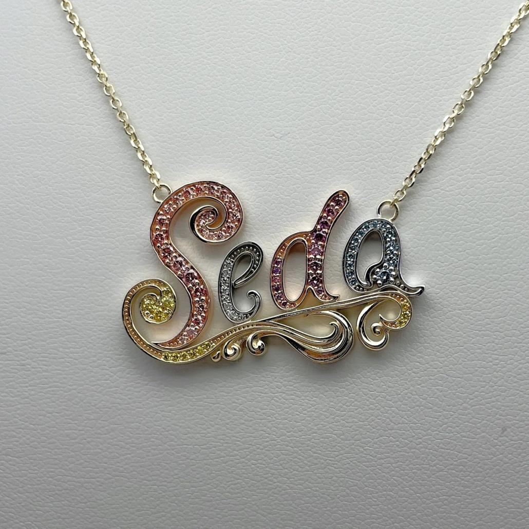 Tags Color Diamonds, Diamond, Handcrafted, Letters, Name, Necklace, One-Of-A-Kind, Pendant, Shared Prongs