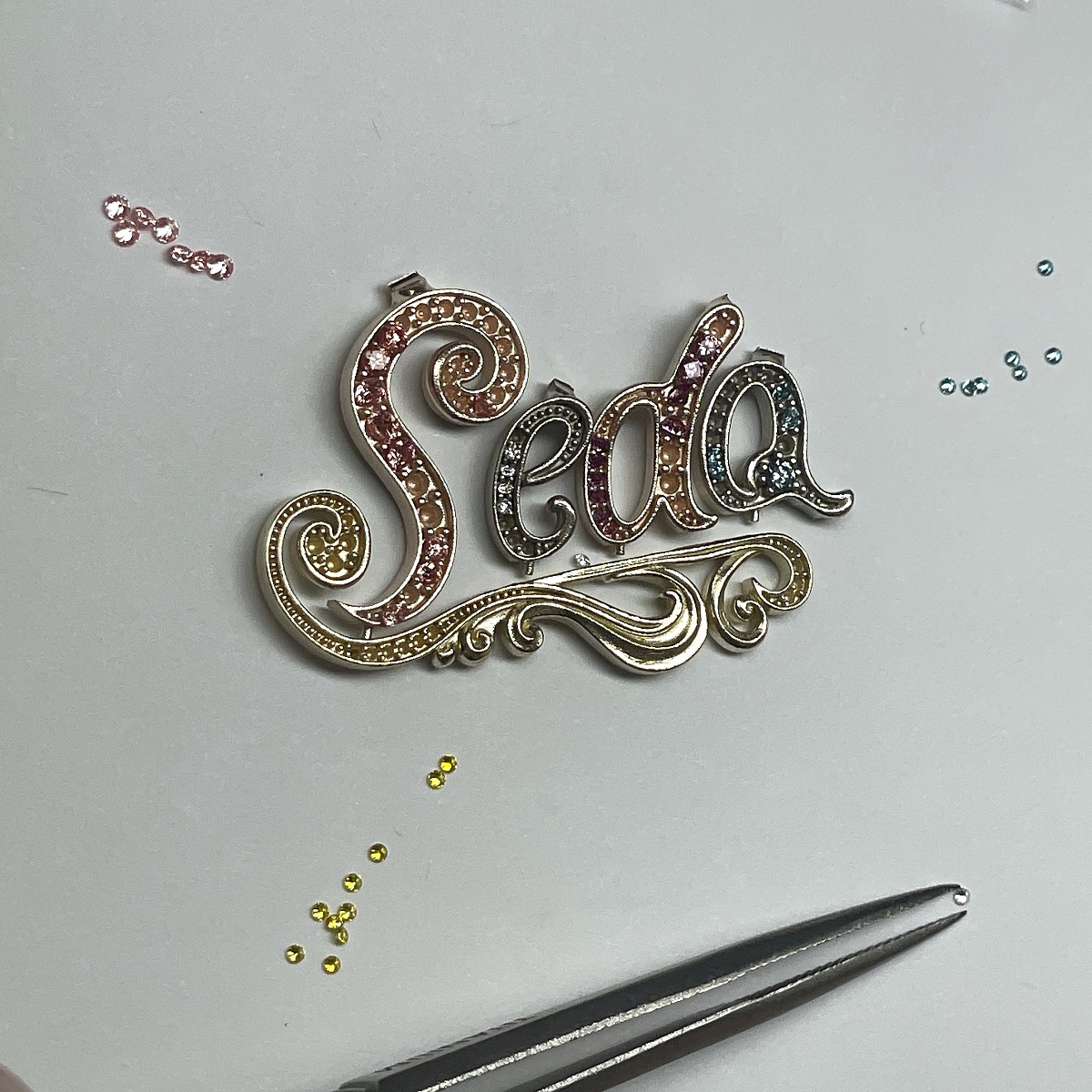 Tags Color Diamonds, Diamond, Handcrafted, Letters, Name, Necklace, One-Of-A-Kind, Pendant, Shared Prongs