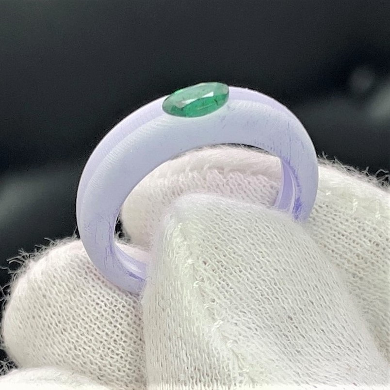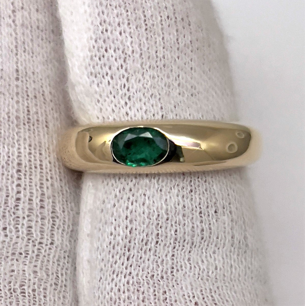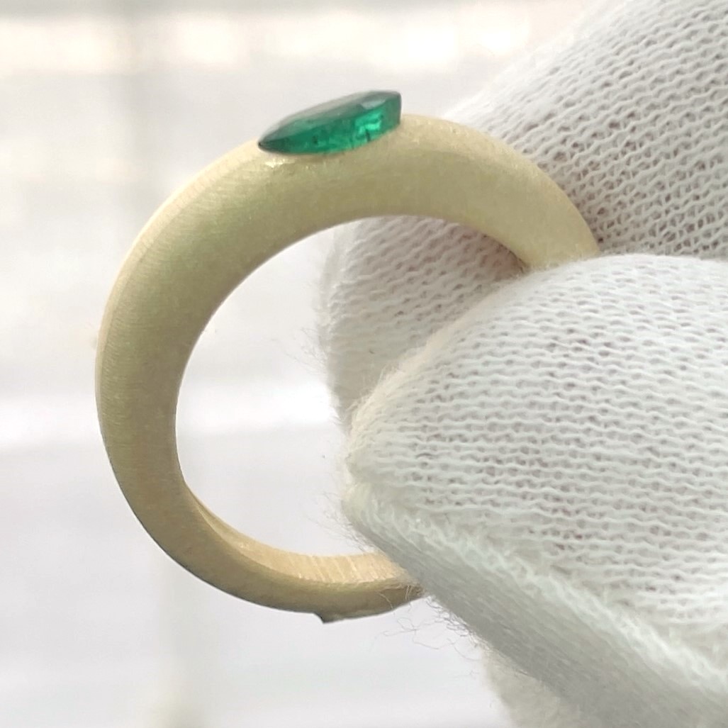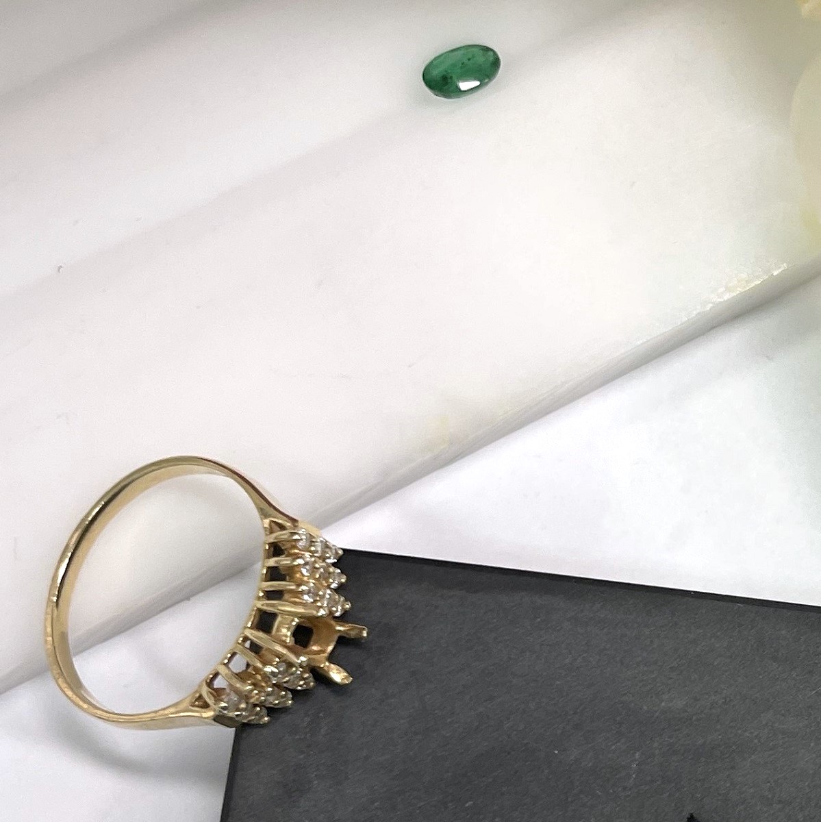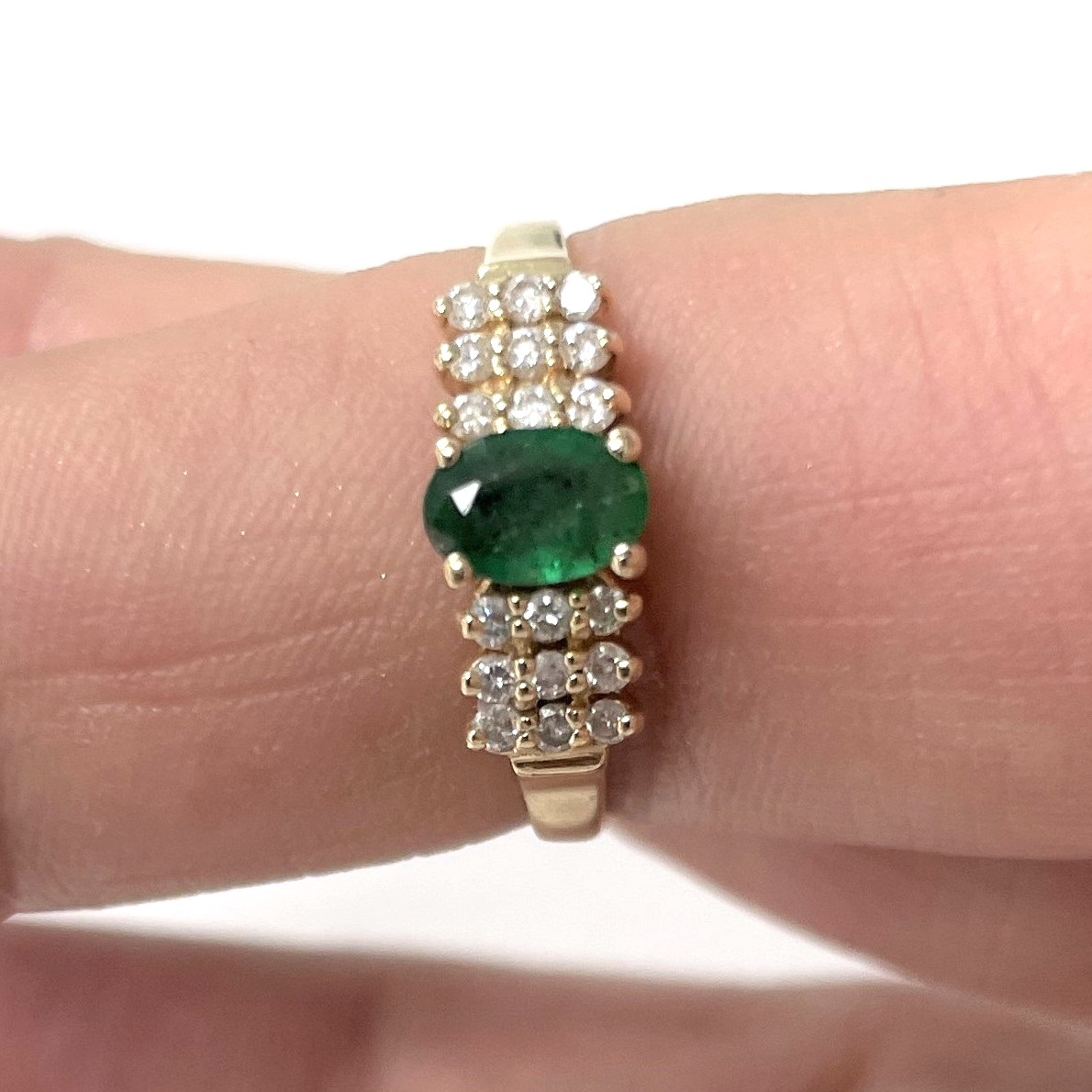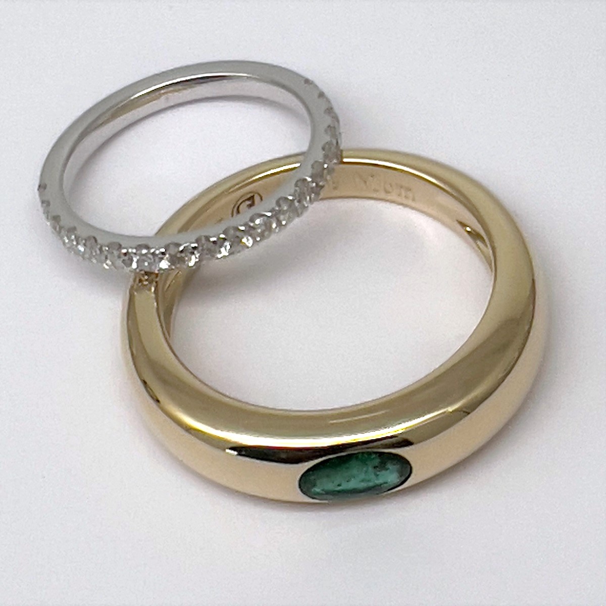 This solitaire emerald ring is made with 14k yellow gold, and features an emerald from a ring that a mother passed on to her daughter.  It is engraved with “Love, Mom”