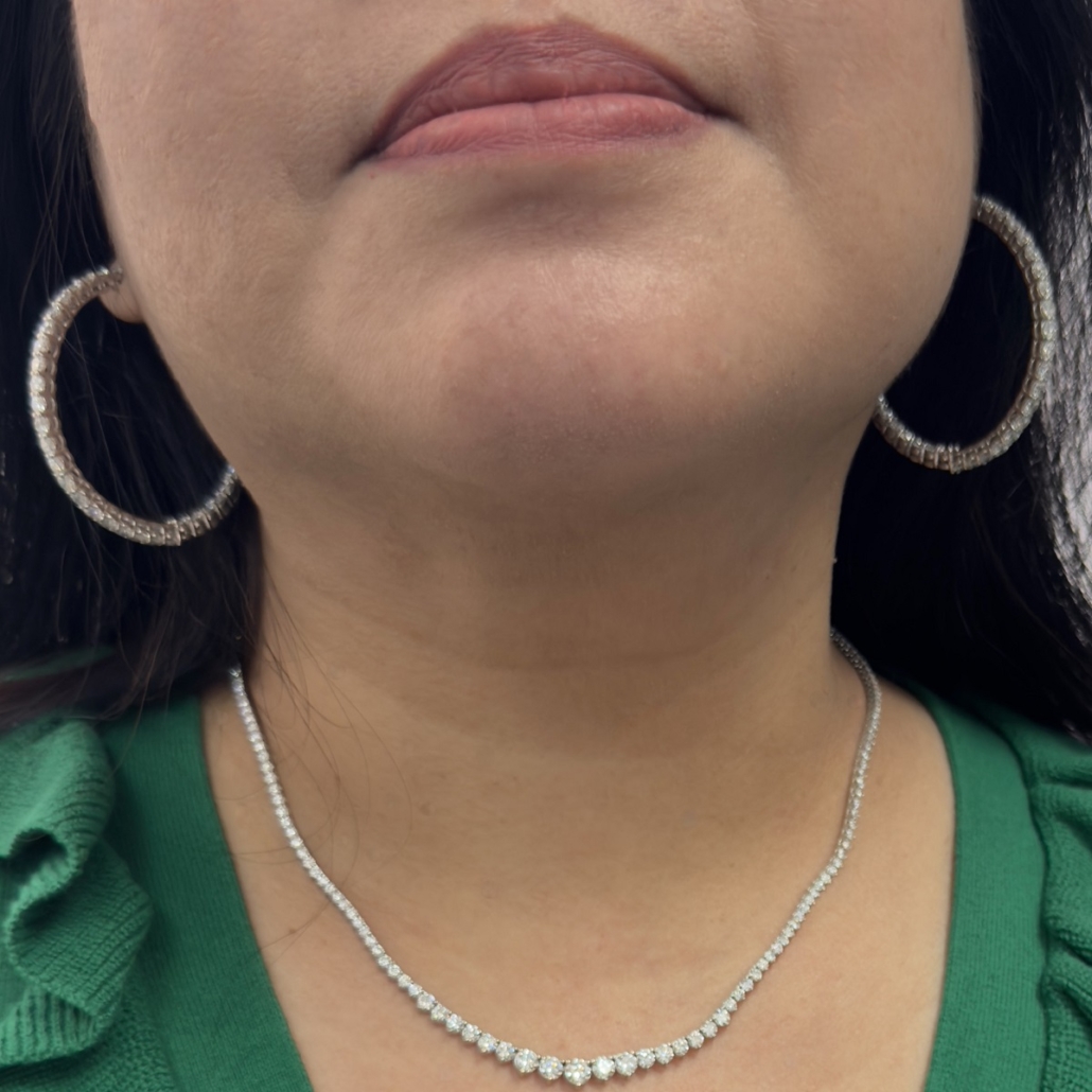 Tags 14k White, Desire, Diamond, Elegant, Forward Facing, Handcrafted, Hoops, Inside Out, Large Earrings, NYC Jewelry, Open Airline, Share Prongs