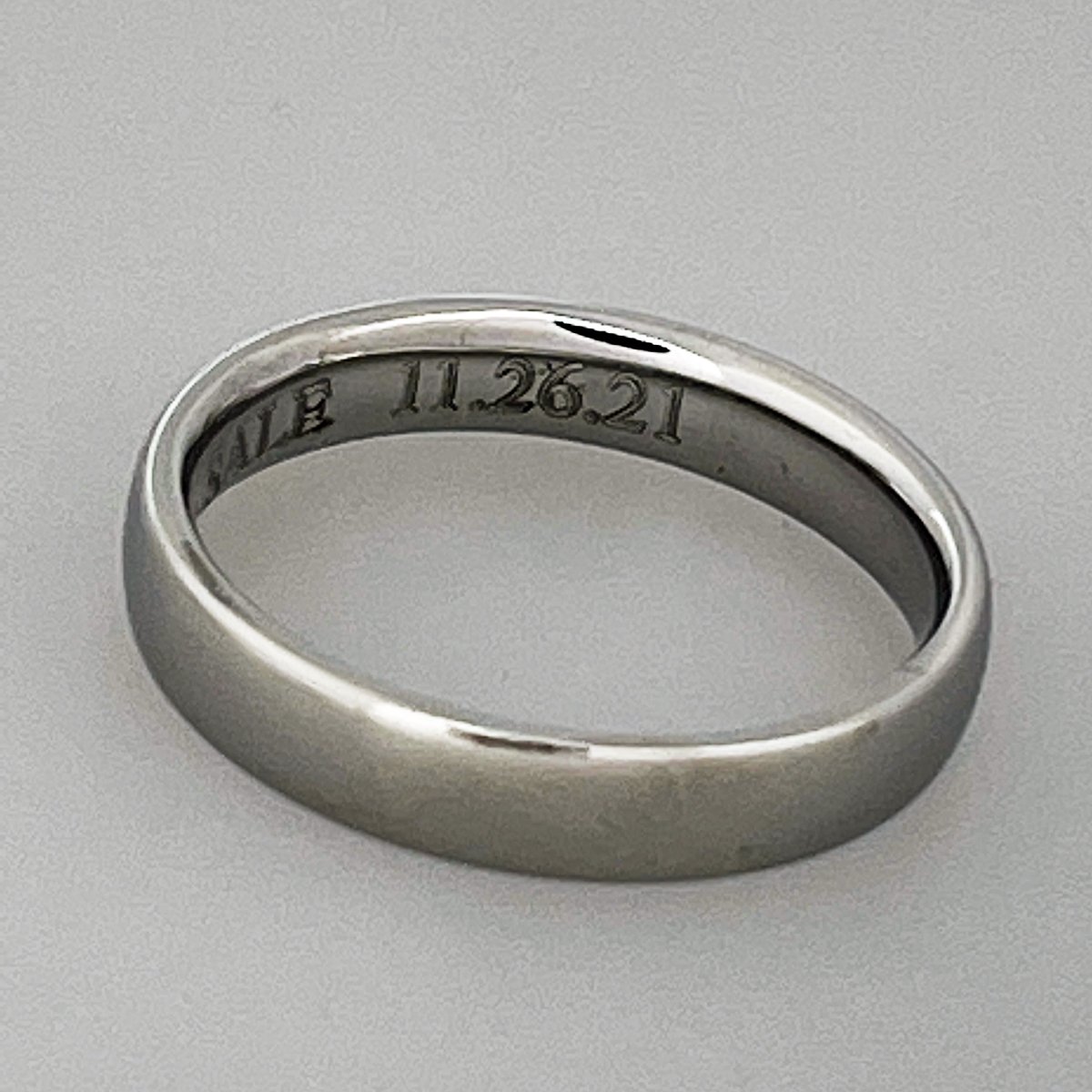 This man’s platinum wedding band is a 3.5mm low-dome band.