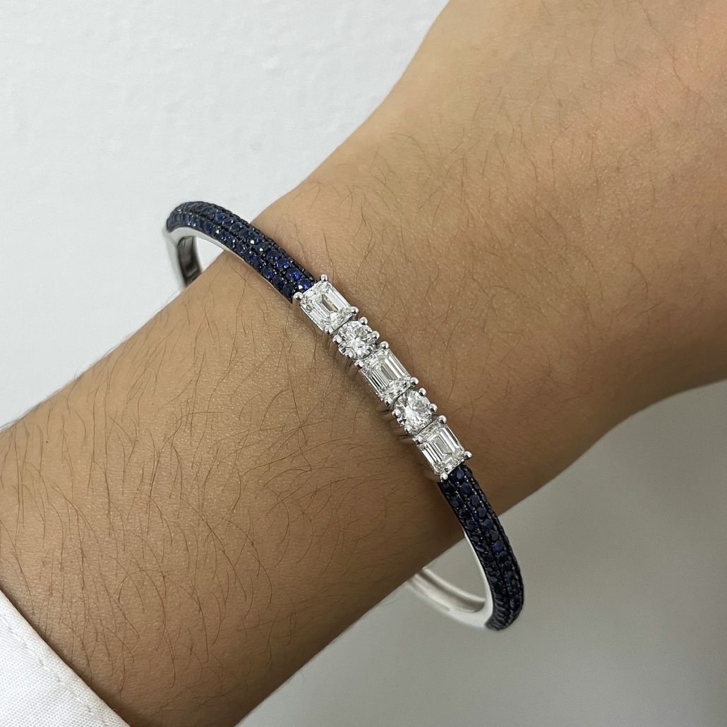 Categories 14K White, Bangle & Cuff Bracelets, Custom Bracelet Not Avail, Diamonds, Elegant, Lavish & Sophisticated, Fine Jewelry, Gemstone Bracelets, Gemstones, Master Bracelet, Master Stone, Master Stone 2, Metal Type, Ready to Buy, Sapphire, The Latest Arrivals