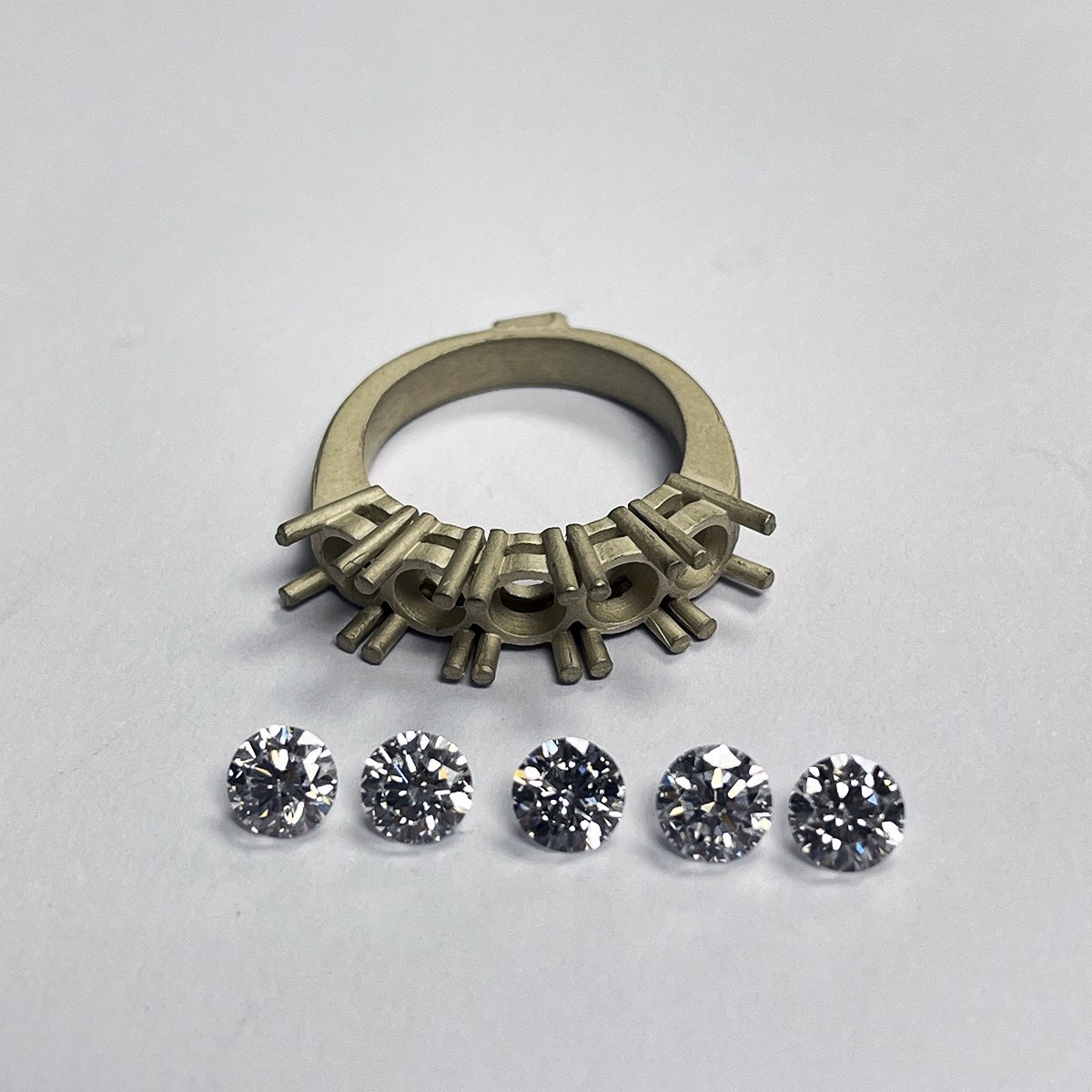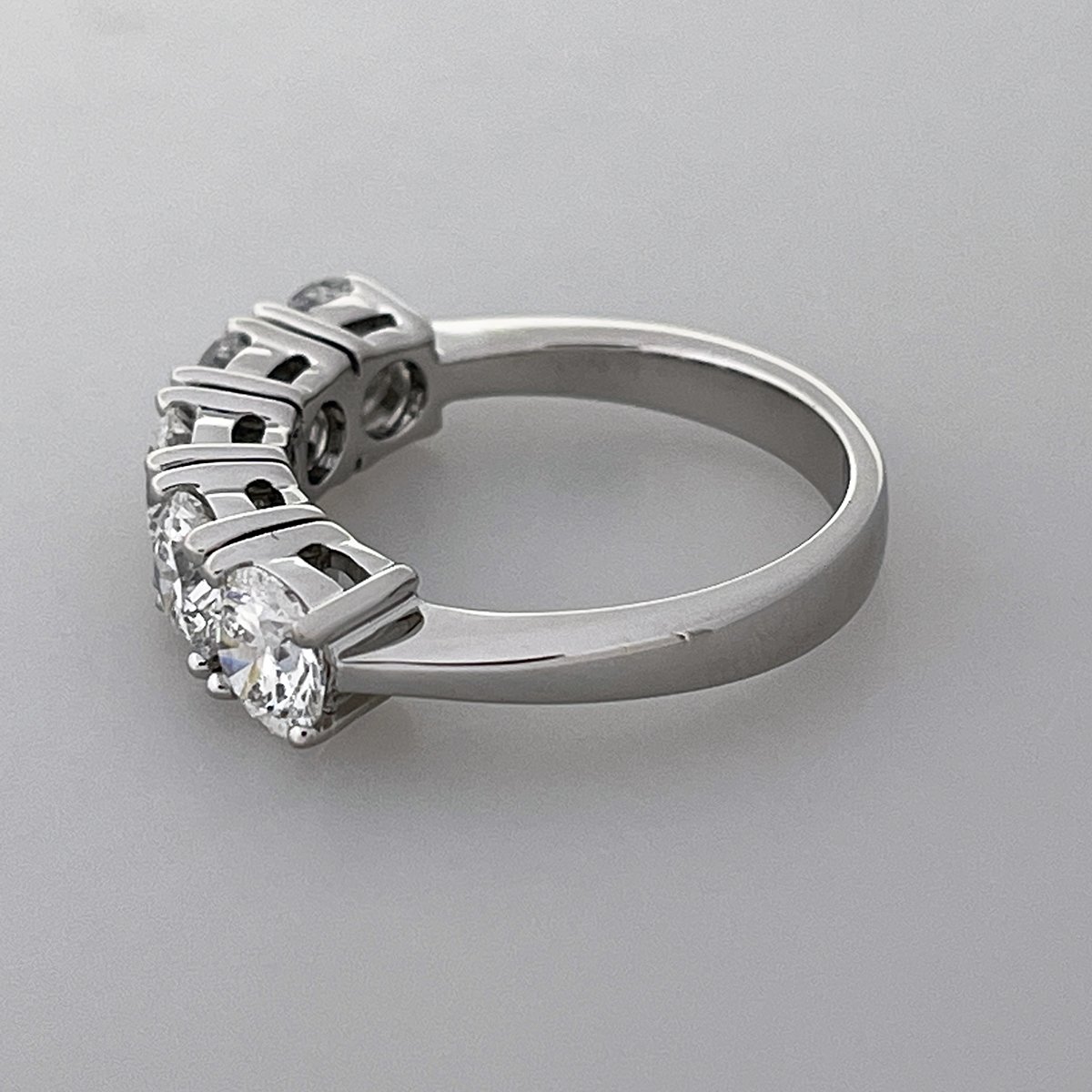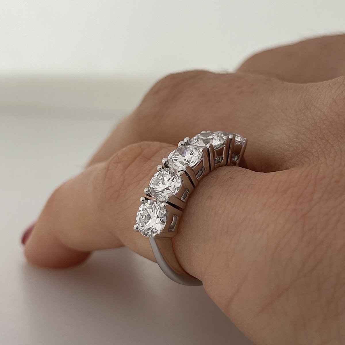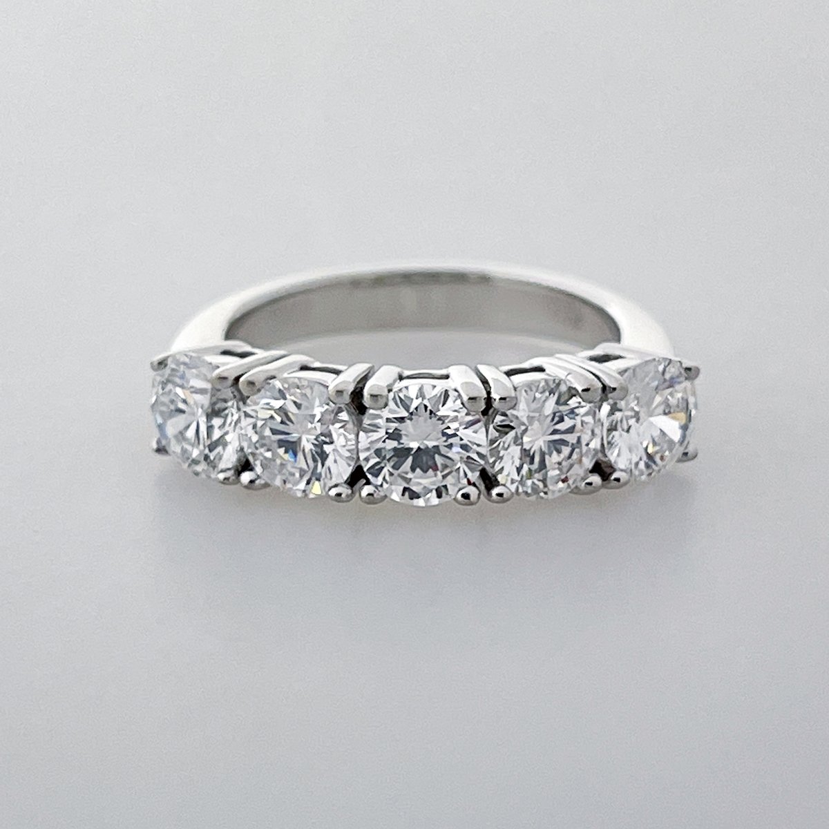 Custom-made 14k white gold wedding ring four prong set with five natural round brilliant diamonds.