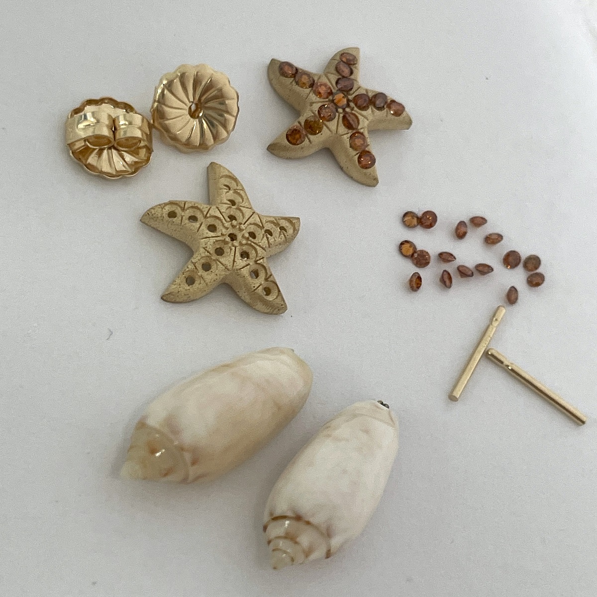 Each starfish anchors a delicate chain that suspends a natural seashell, creating a perfect balance of elegance and earthy beauty.