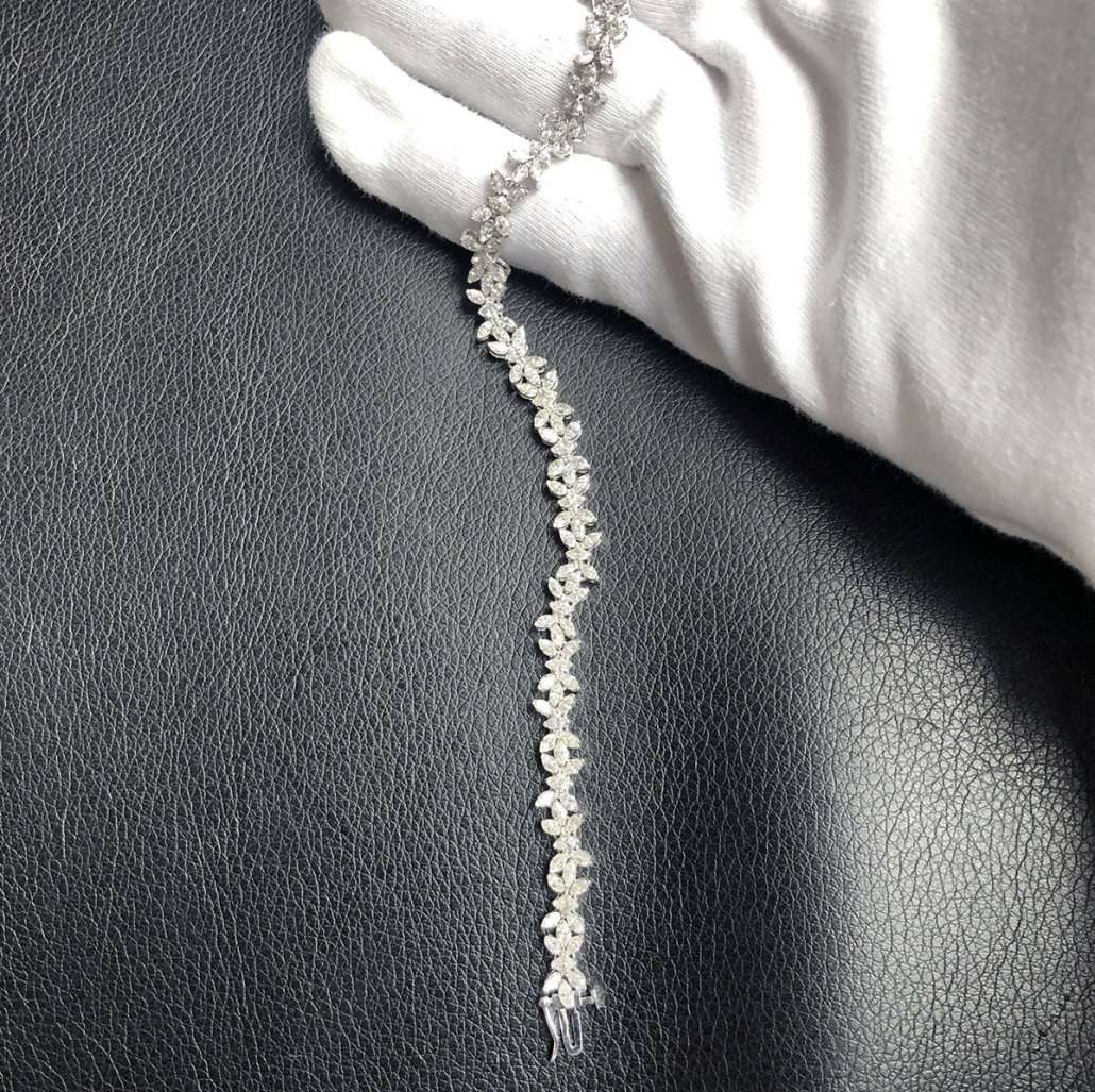 Marquise cut diamonds form a feminine floral design in this one of a kind sparkling bracelet.