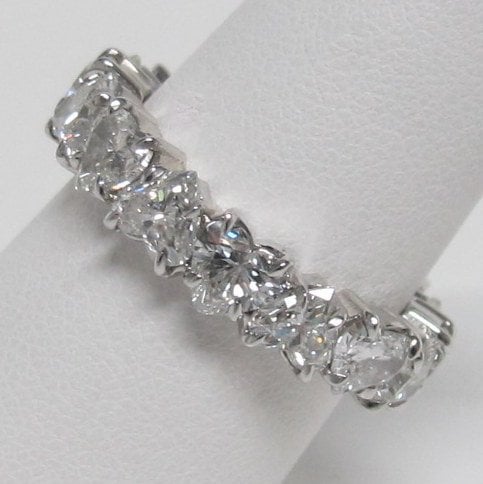 The ring was handmade to fit each diamond. The diamonds alternate facing north and south around the ring.