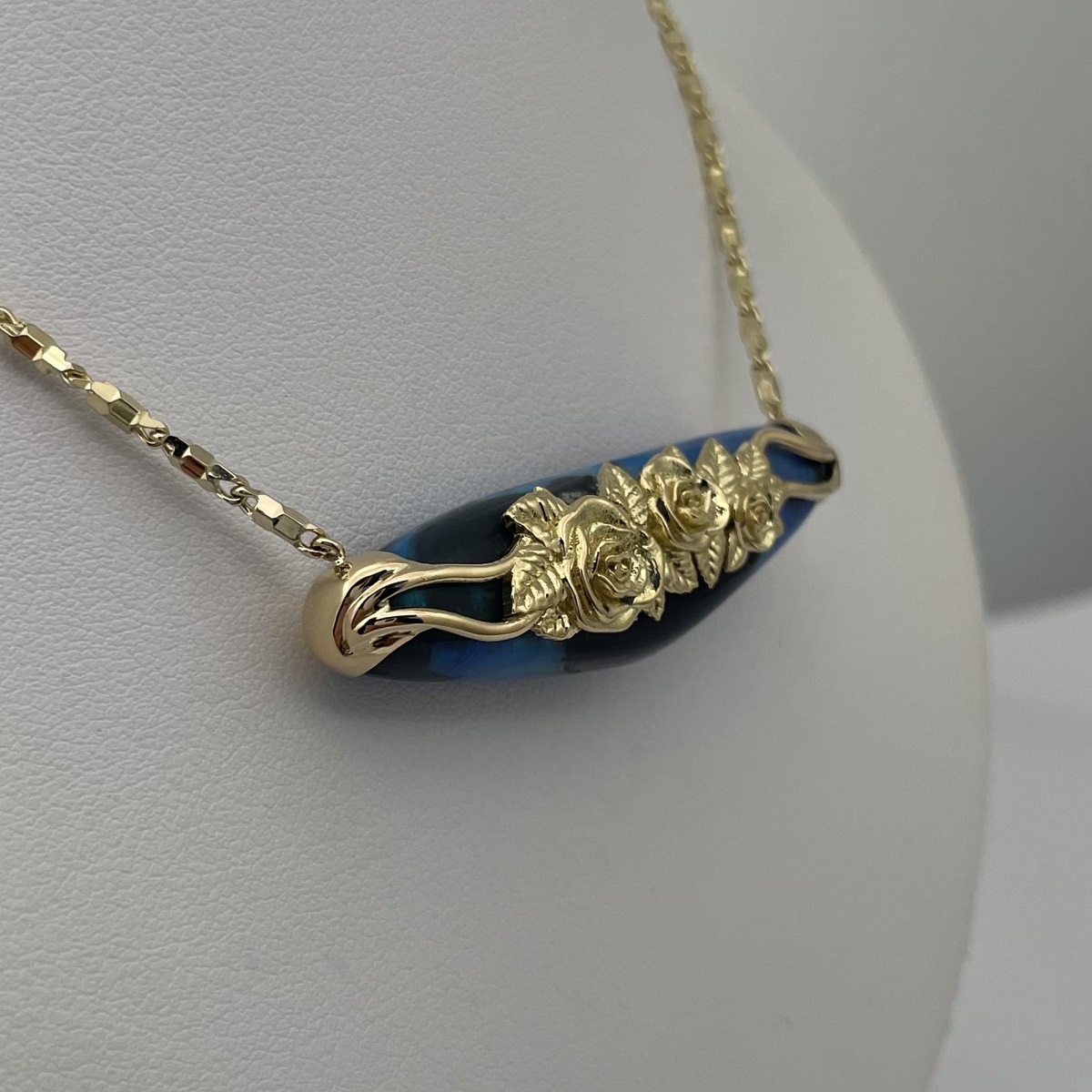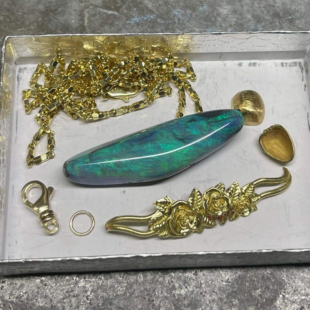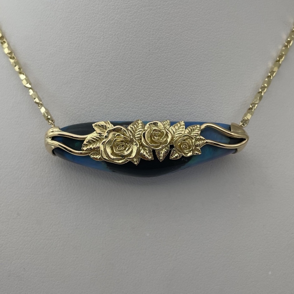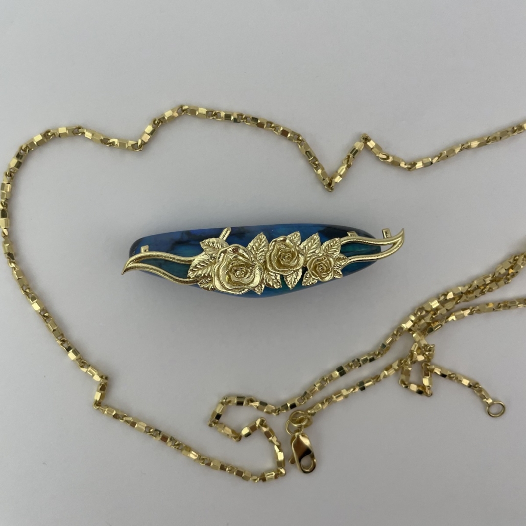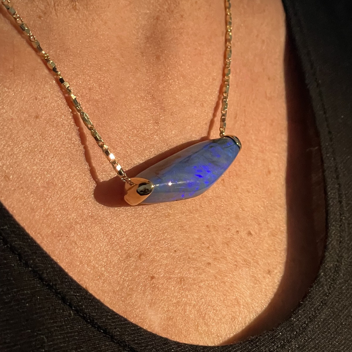 Tags 18k Yellow, Abstract, Australian, Bezel Set, Black Opal, Desire, Elegant, Fancy Color, Floral, Handcrafted, link chain, Multi-Color, Necklace, One-Of-A-Kind, Opal, solitaire