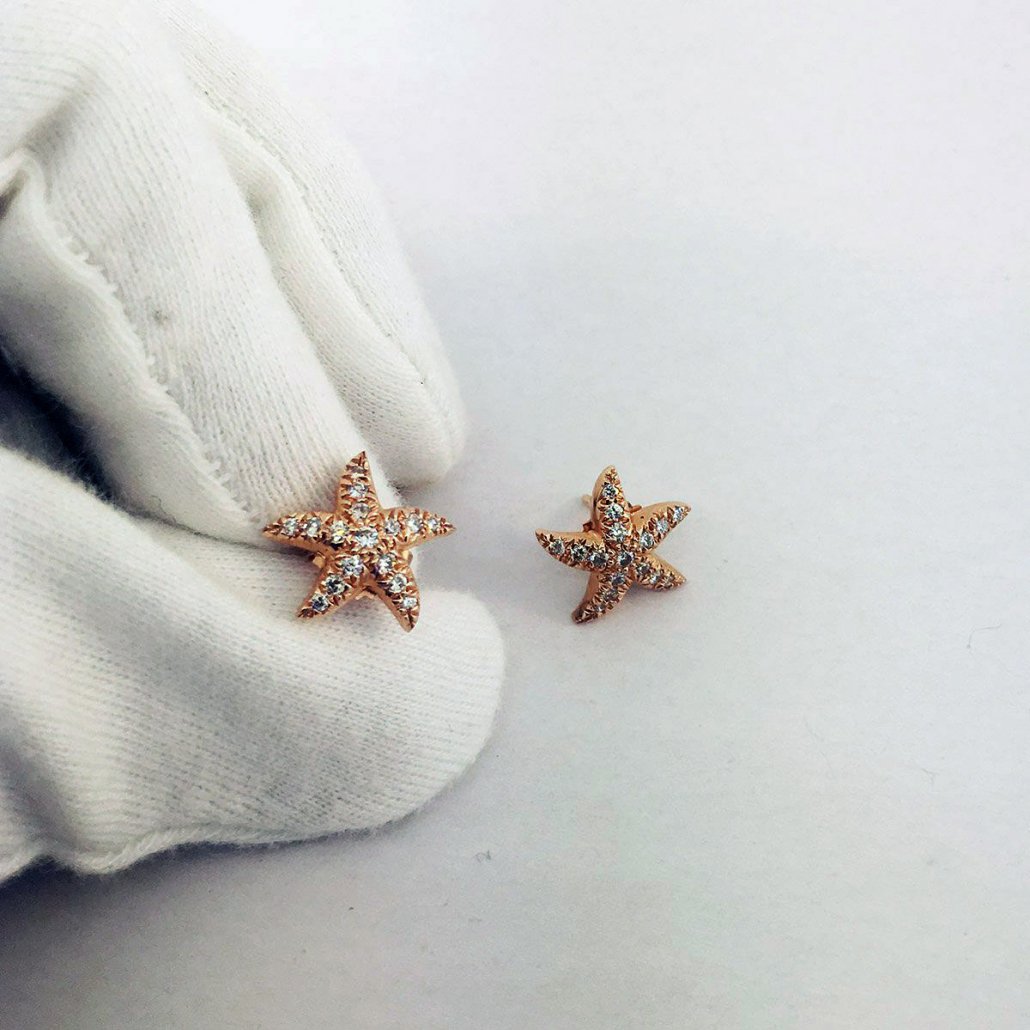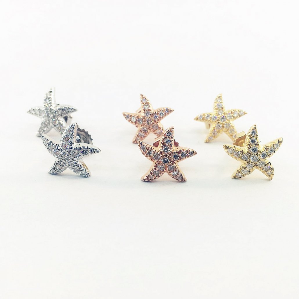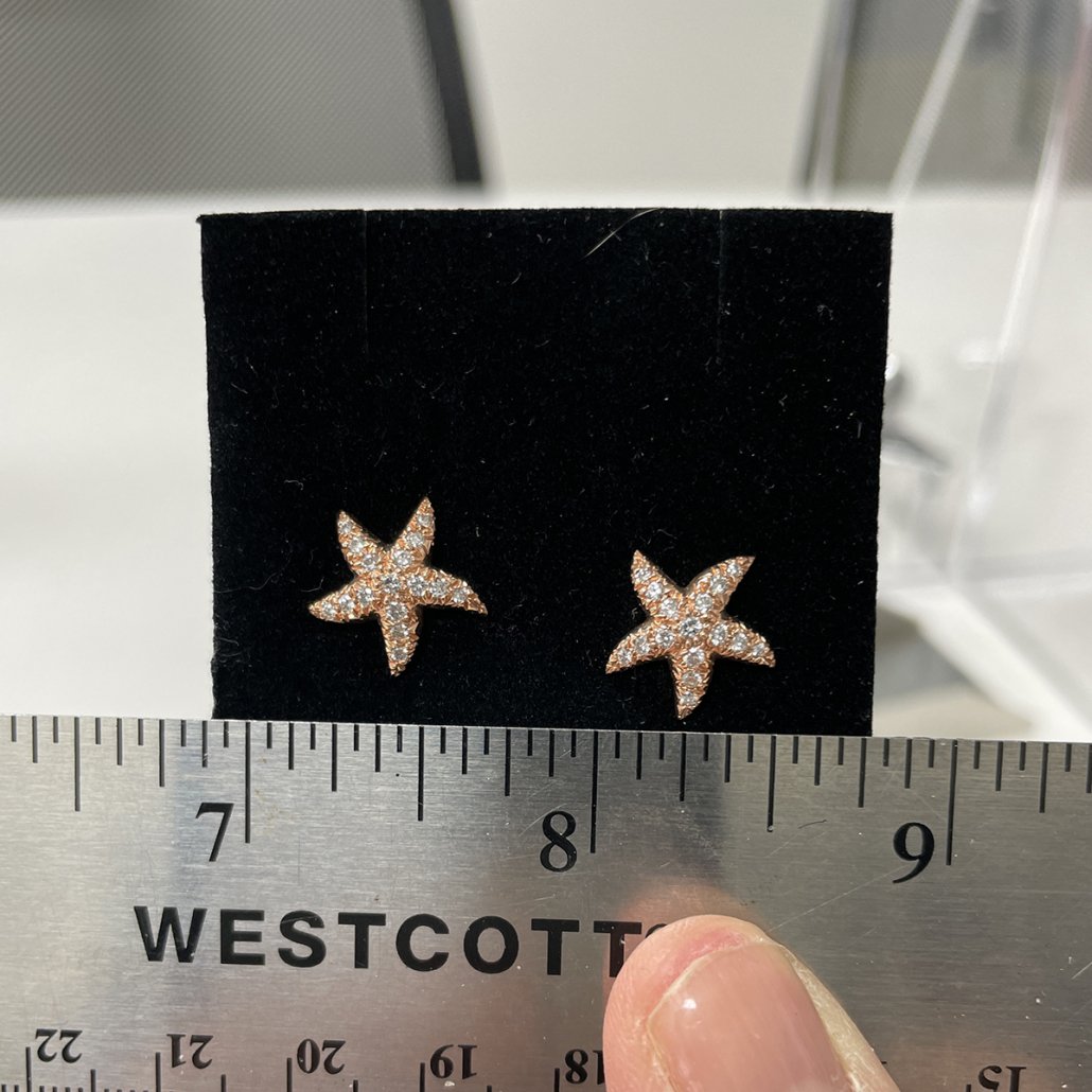 Tags Beach Lovers Earrings, Diamond Starfish Earrings, Fine Jewelry, Fine Jewelry for Beach Lovers, Perfect for Tropical Vacation, Pink Gold Starfish Earrings, Starfish, Sun and Surf