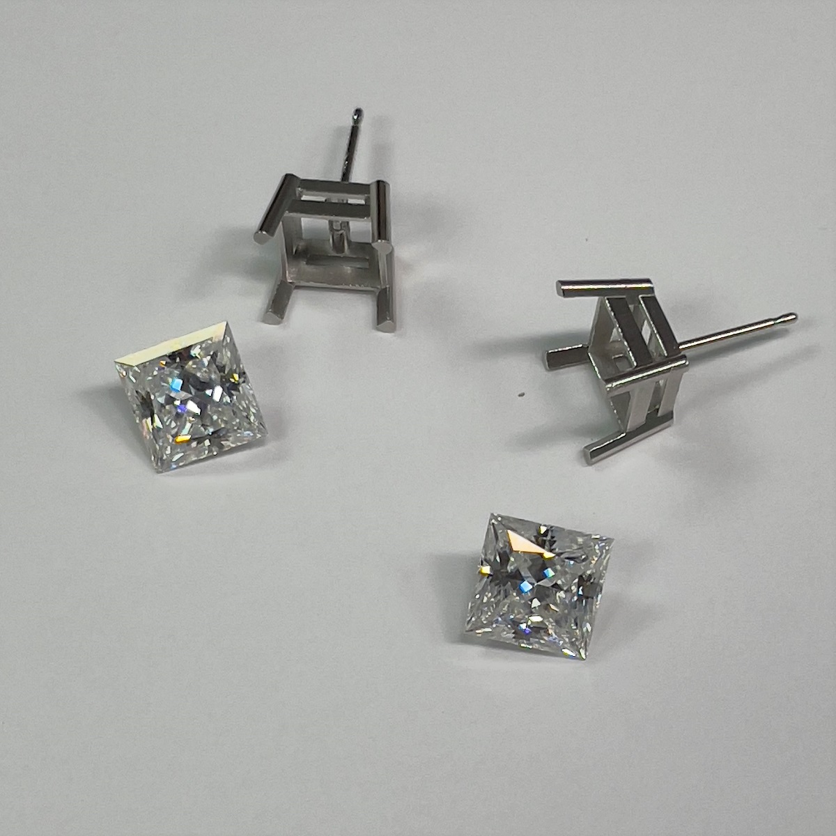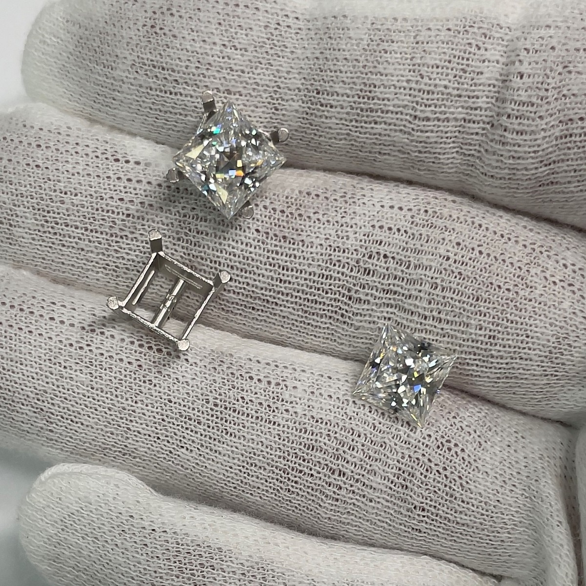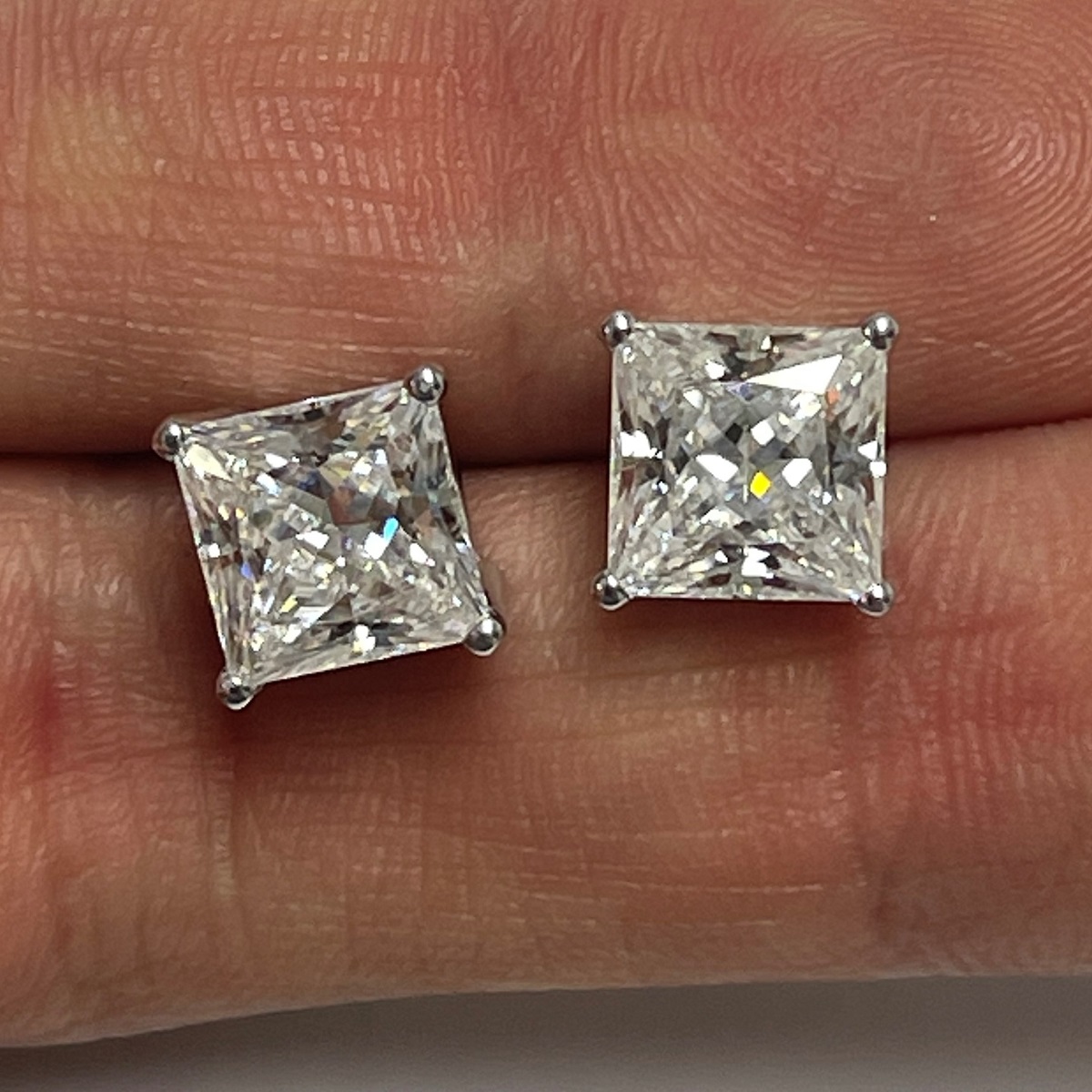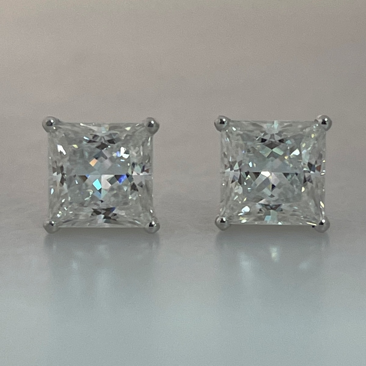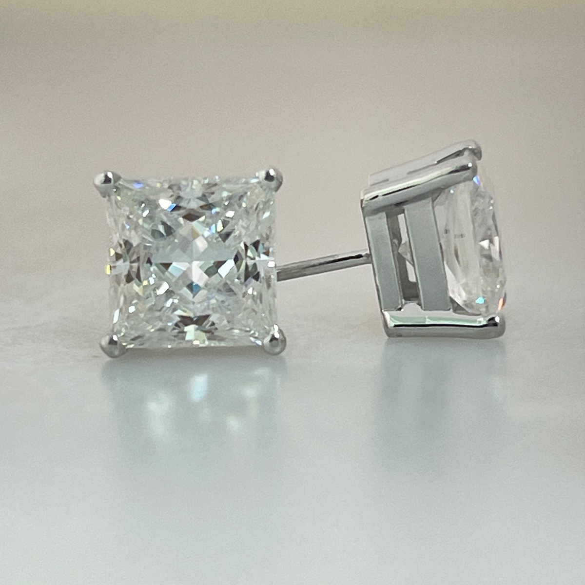 Classic Princess Cut Diamond Studs Prong Set With 14k White Gold