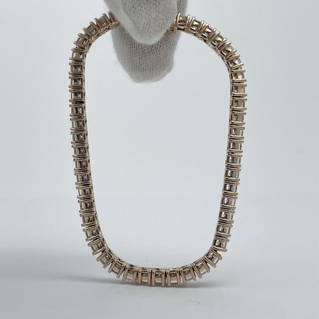 This 14k rose gold tennis bracelet is set with natural princess cut diamonds in four prongs setting.