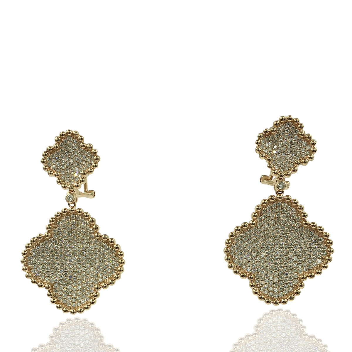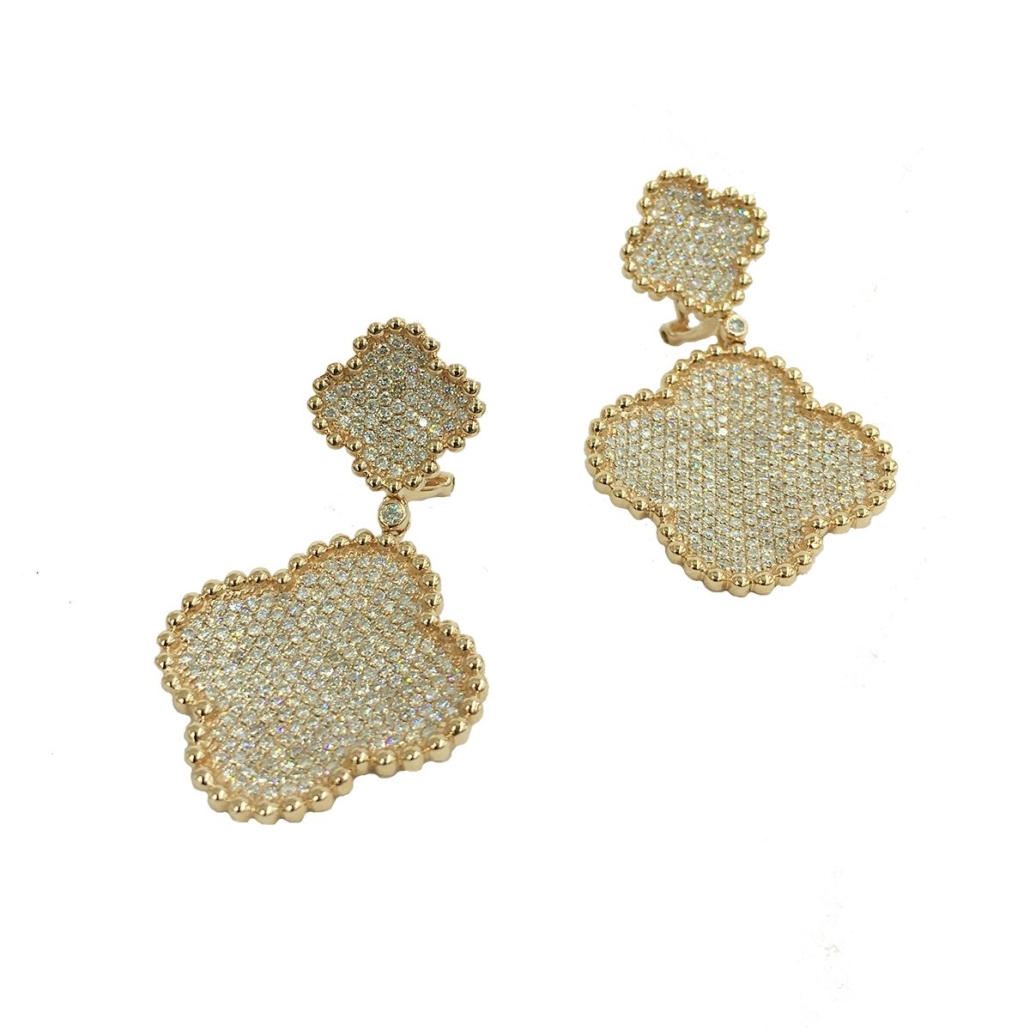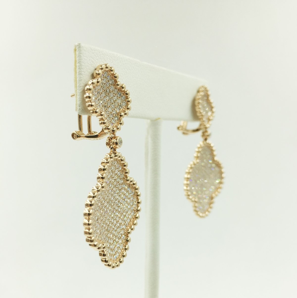 Tags 18k Pink, Clover, Cluster, Dangle, Desire, Diamond, drop, Elegant, Floral, pave, Quatrefoil, rose, Rose Gold