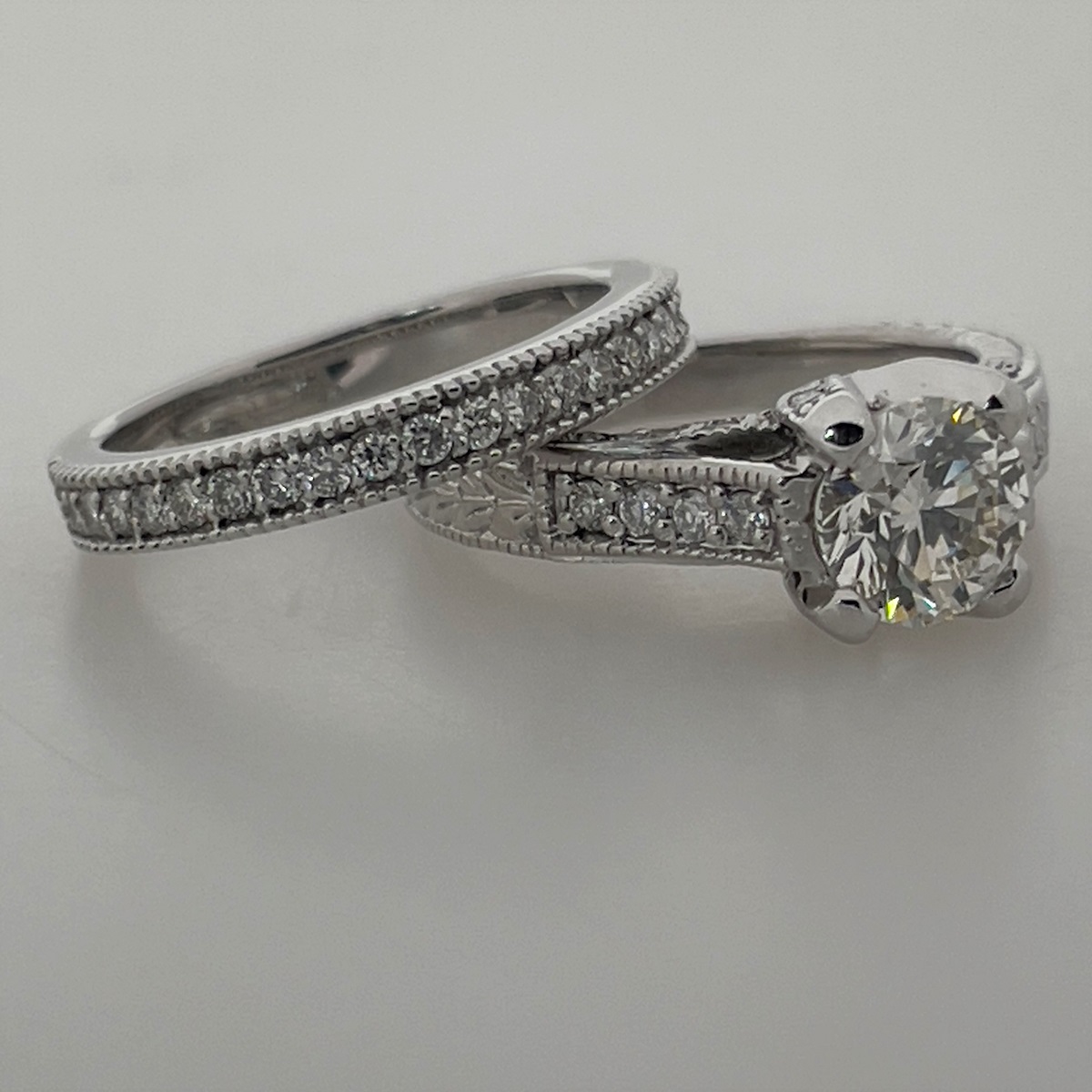 Beautiful classic vintage inspired wedding band made to match Rylan’s engagement ring.