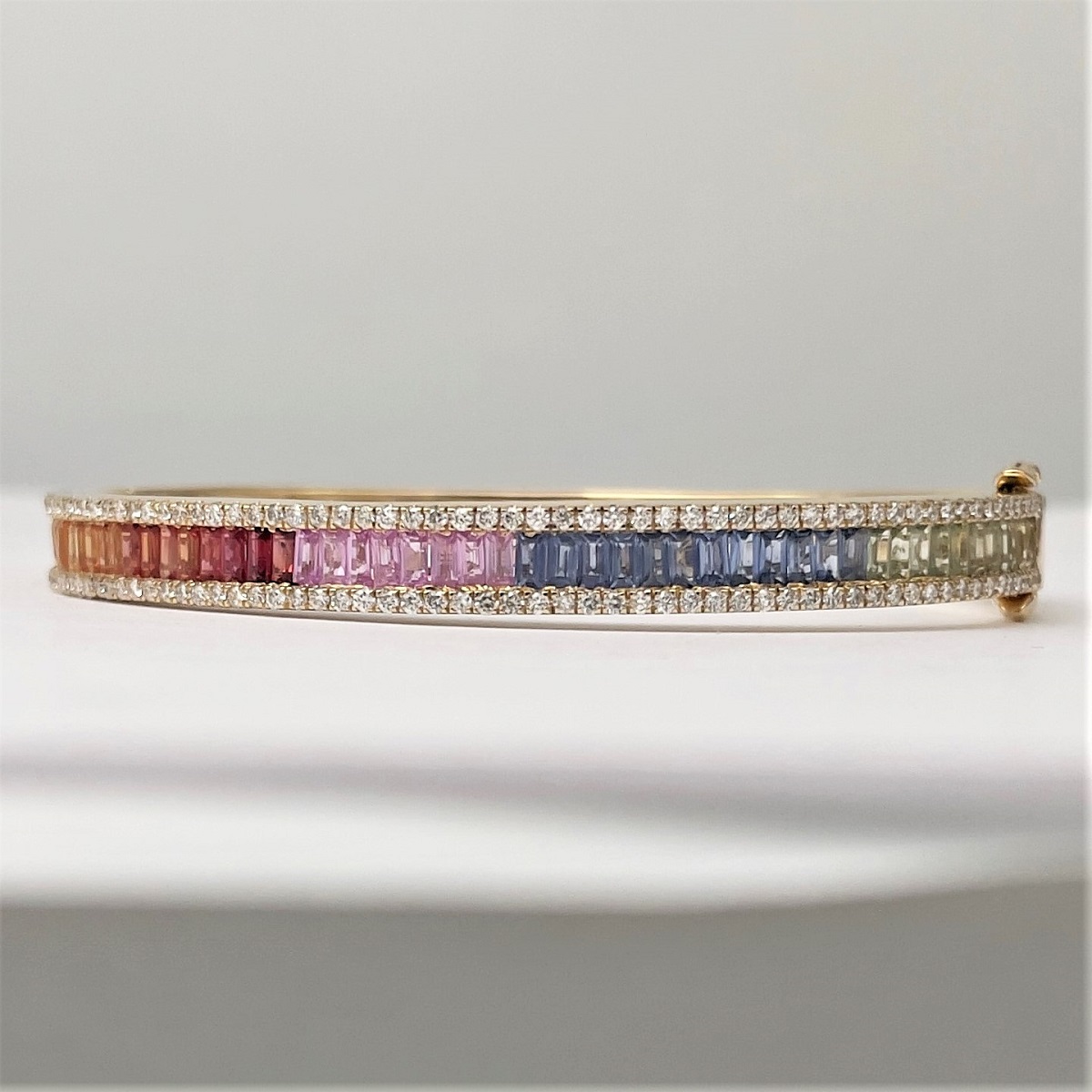 Tags Colored Sapphire Bracelet, Gold Diamond Sapphire Bangle, Gold Diamond Sapphire Bracelet, Gold Sapphire Bangles, Multi Color Bracelet, Multi Color Jewelry, Rainbow Bracelet, Rainbow Jewelry, Sapphire Diamond Bracelet