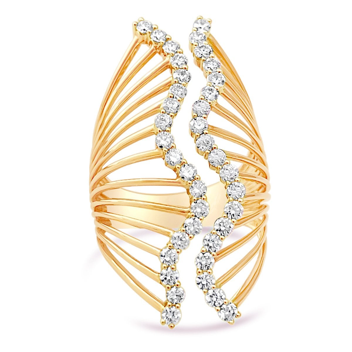 Rose Gold shaped like a clamshell, rimmed in diamonds.