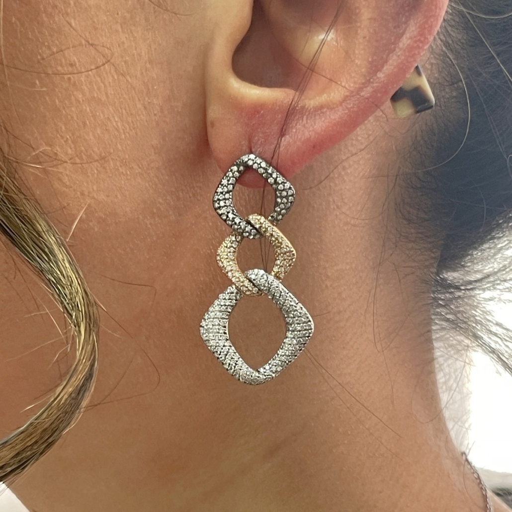 Tags #trending links, Black Gold, Dangle Link Earrings, Dangling Diamond Earrings, Diamond Dangle Earrings, Diamond Dangle Link Earrings, earrings, holiday gifts, Natural cut full cut diamonds, Tri Color Gold Diamond Earrings, Tri-Color Gold, White Gold, yellow gold