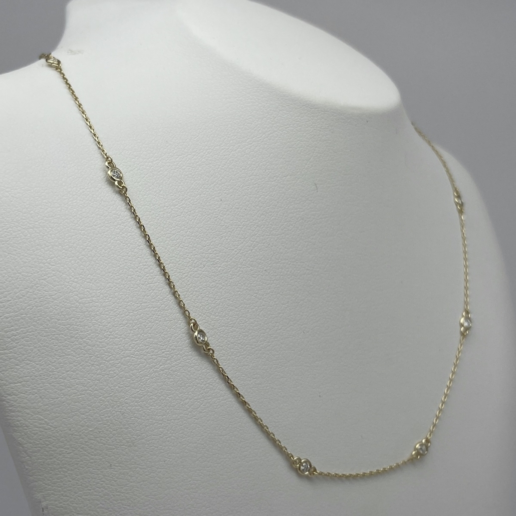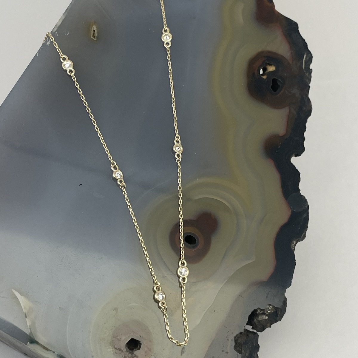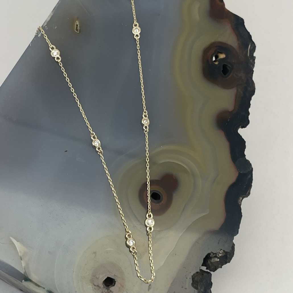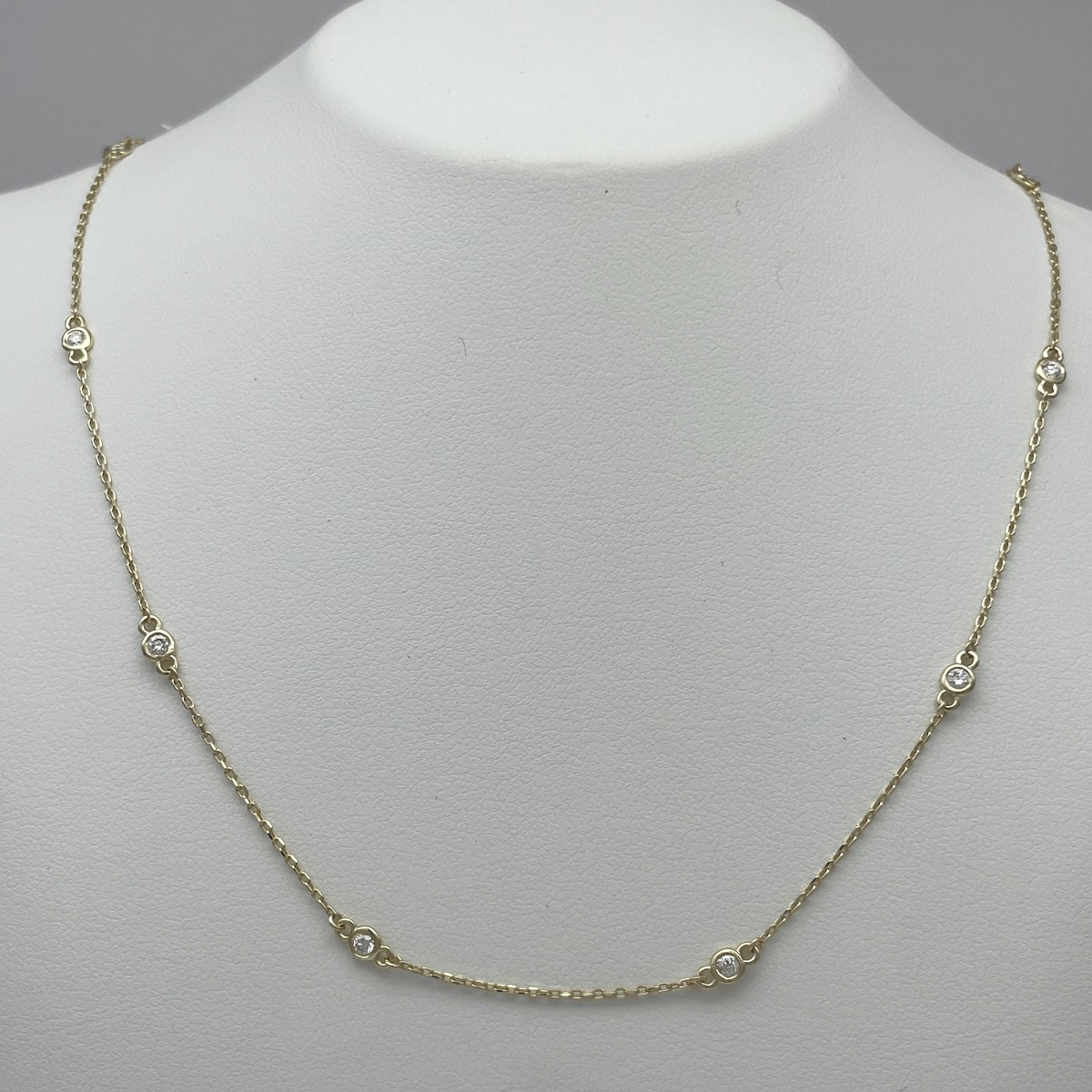 Tags 14k Yellow, bezel, Classic, Diamond, Diamond Cut Cable, Necklace, Stones on Chain