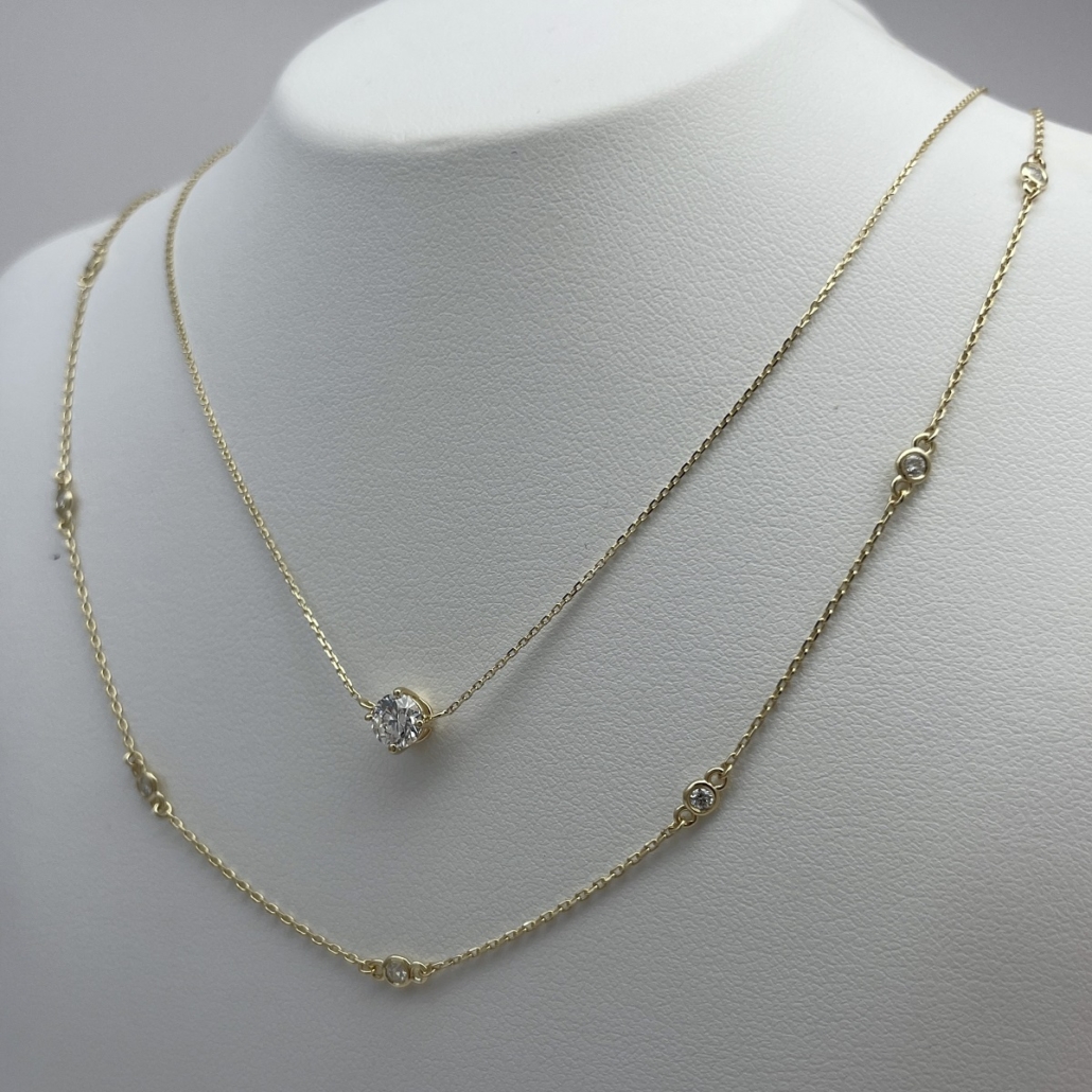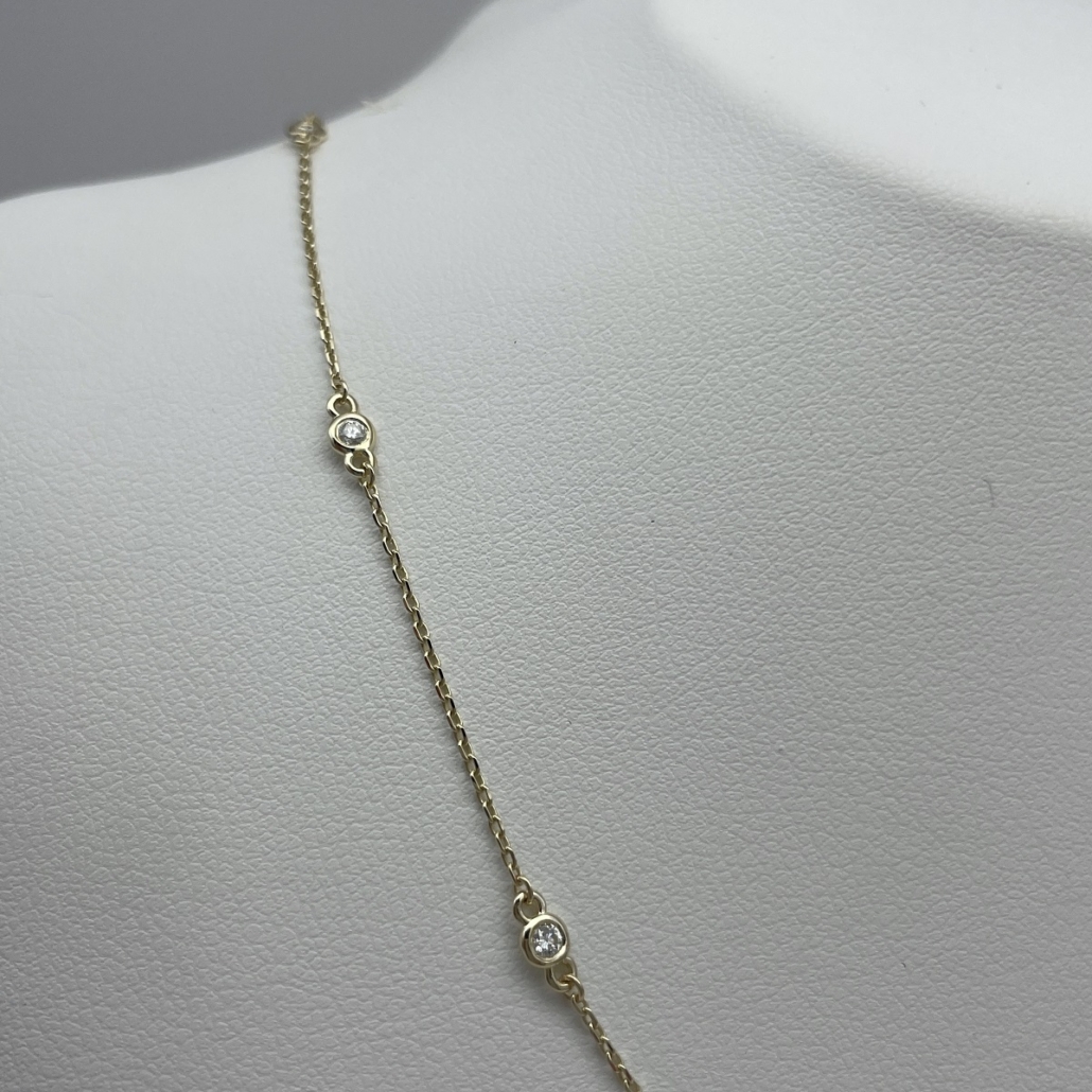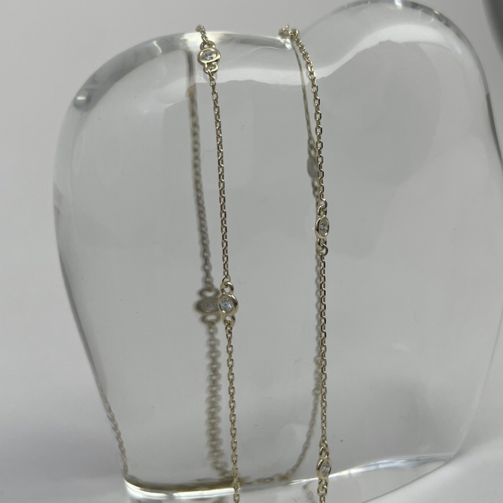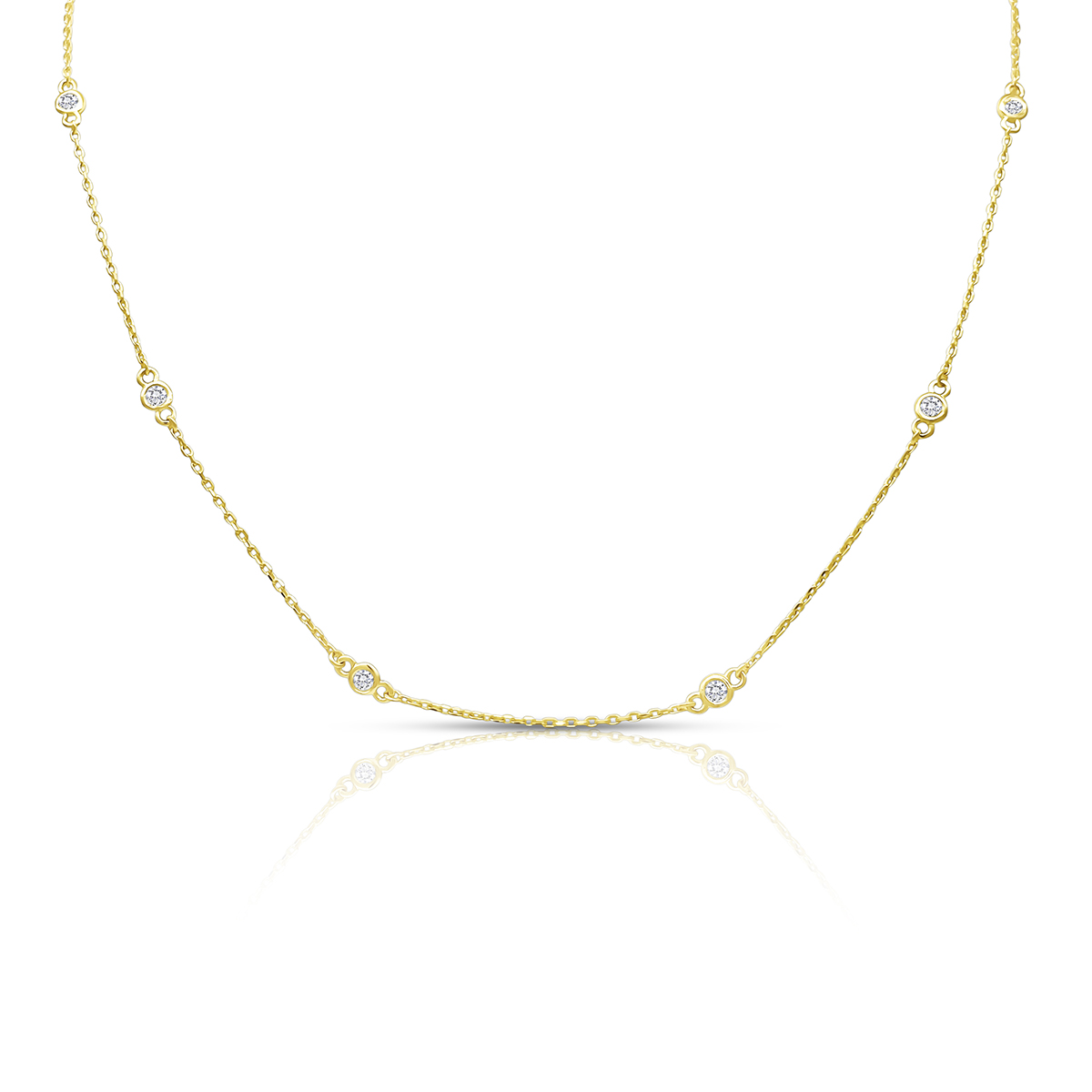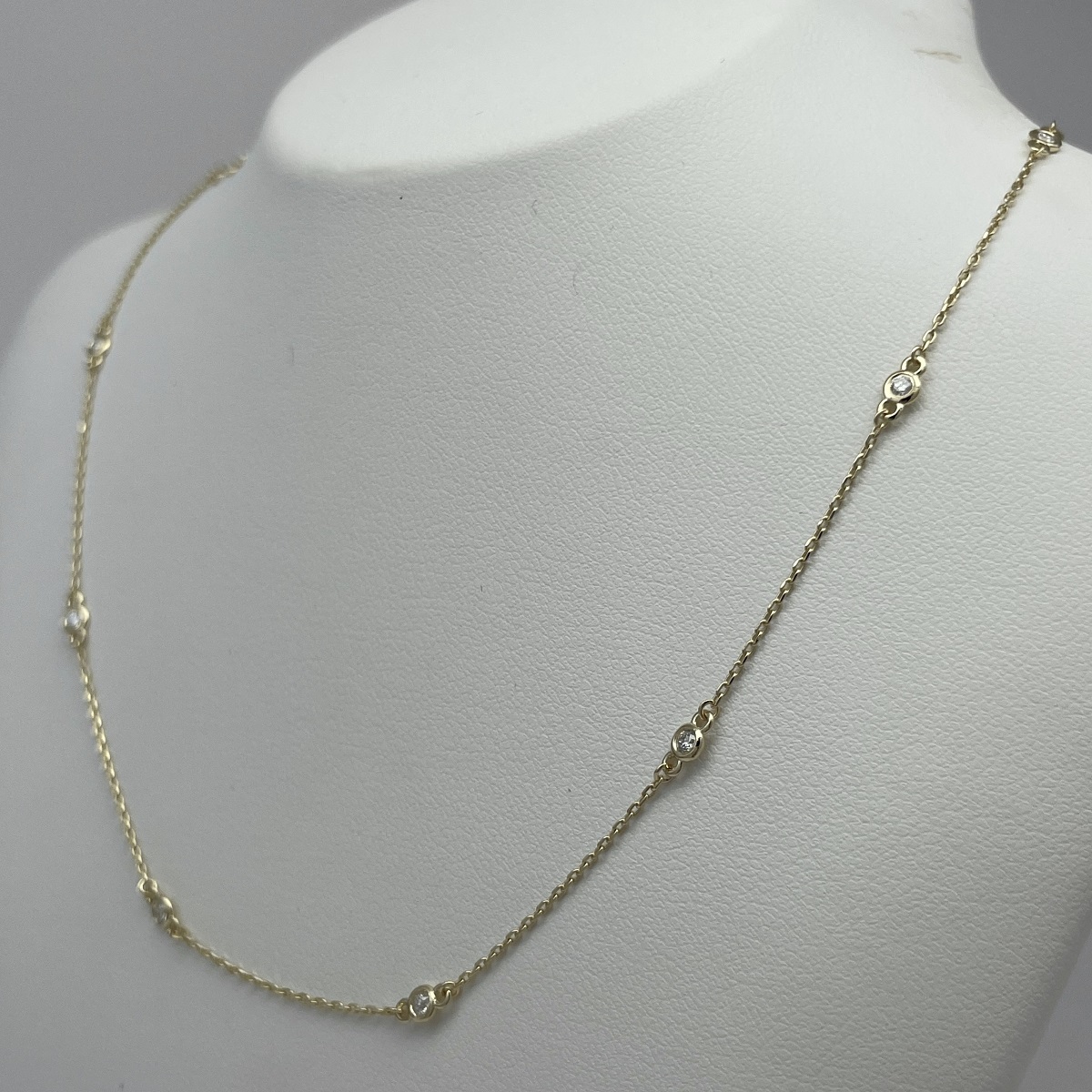 Tags 14k Yellow, bezel, Classic, Diamond, Diamond Cut Cable, Necklace, Stones on Chain