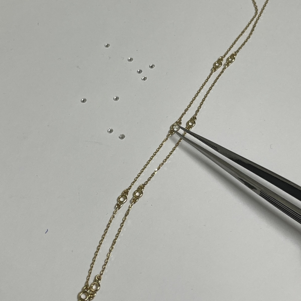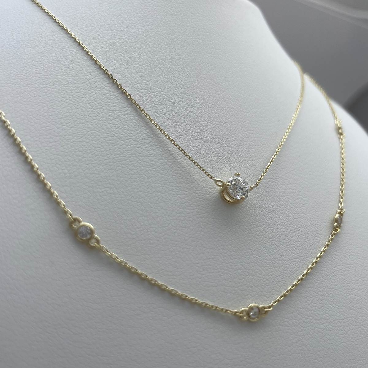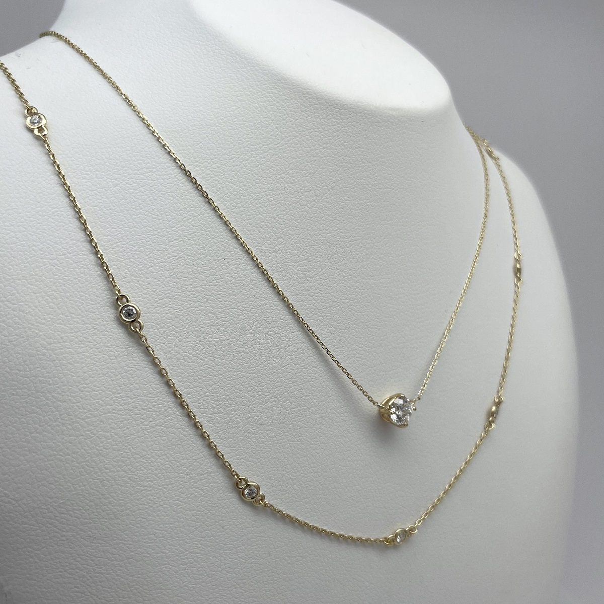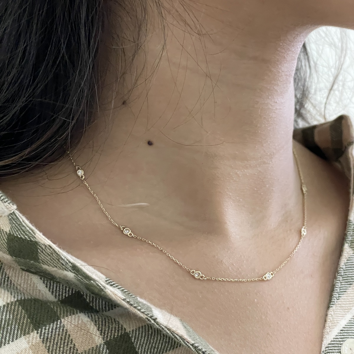 Tags 14k Yellow, bezel, Classic, Diamond, Diamond Cut Cable, Necklace, Stones on Chain