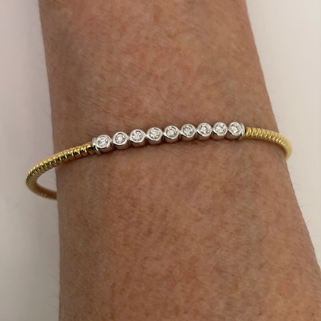 18kWhite Gold Bezel Set Diamonds On The 18k Yellow Bangle