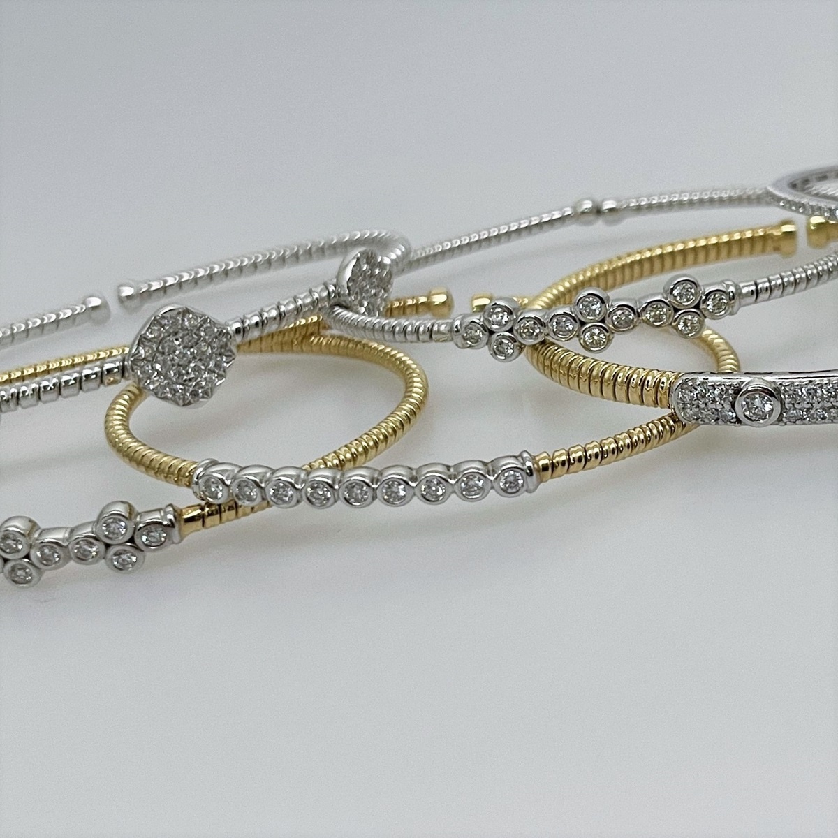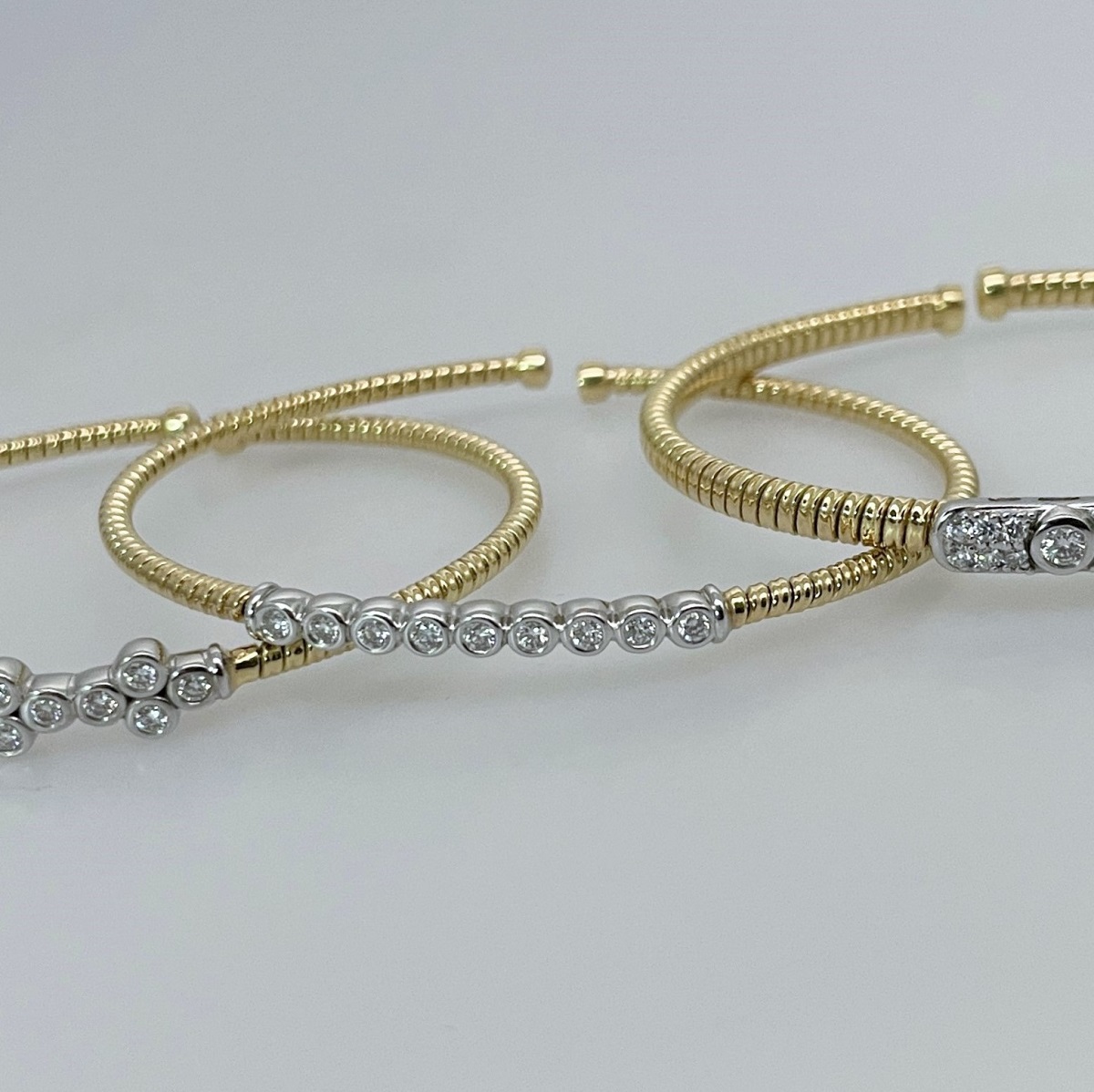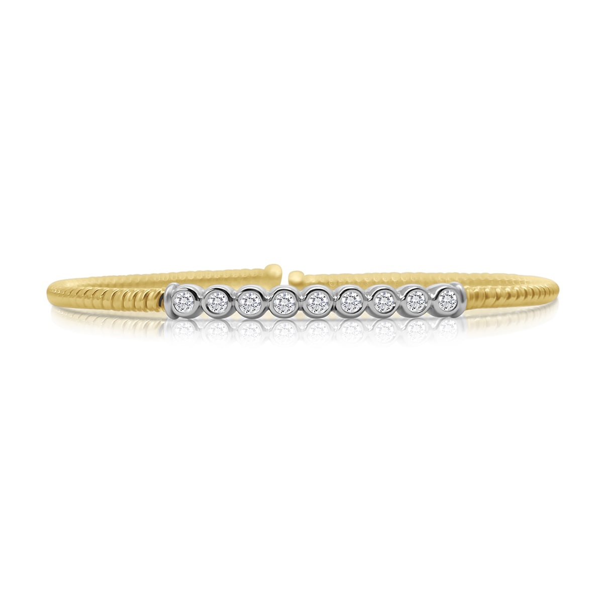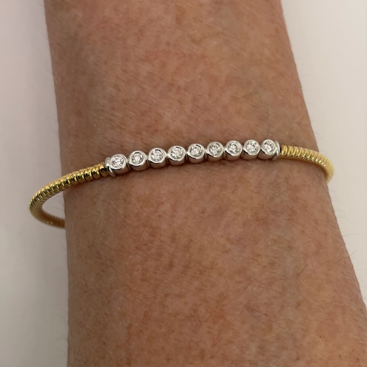 18kWhite Gold Bezel Set Diamonds On The 18k Yellow Bangle