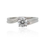This solitaire engagement ring is 18k plumb white gold and weighs 4.10 grams and contains one round brilliant natural diamond.