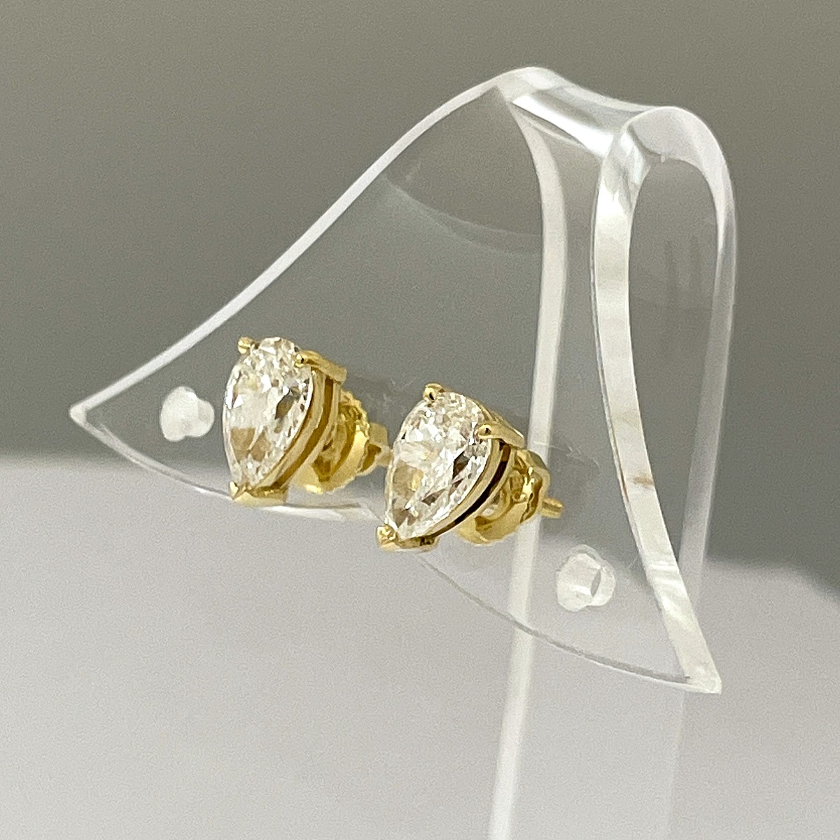 A delicate fusion of brilliance and grace, these pear-shaped diamond studs are set in warm yellow gold and finished with heart-shaped prongs—a symbol of timeless love and understated luxury.