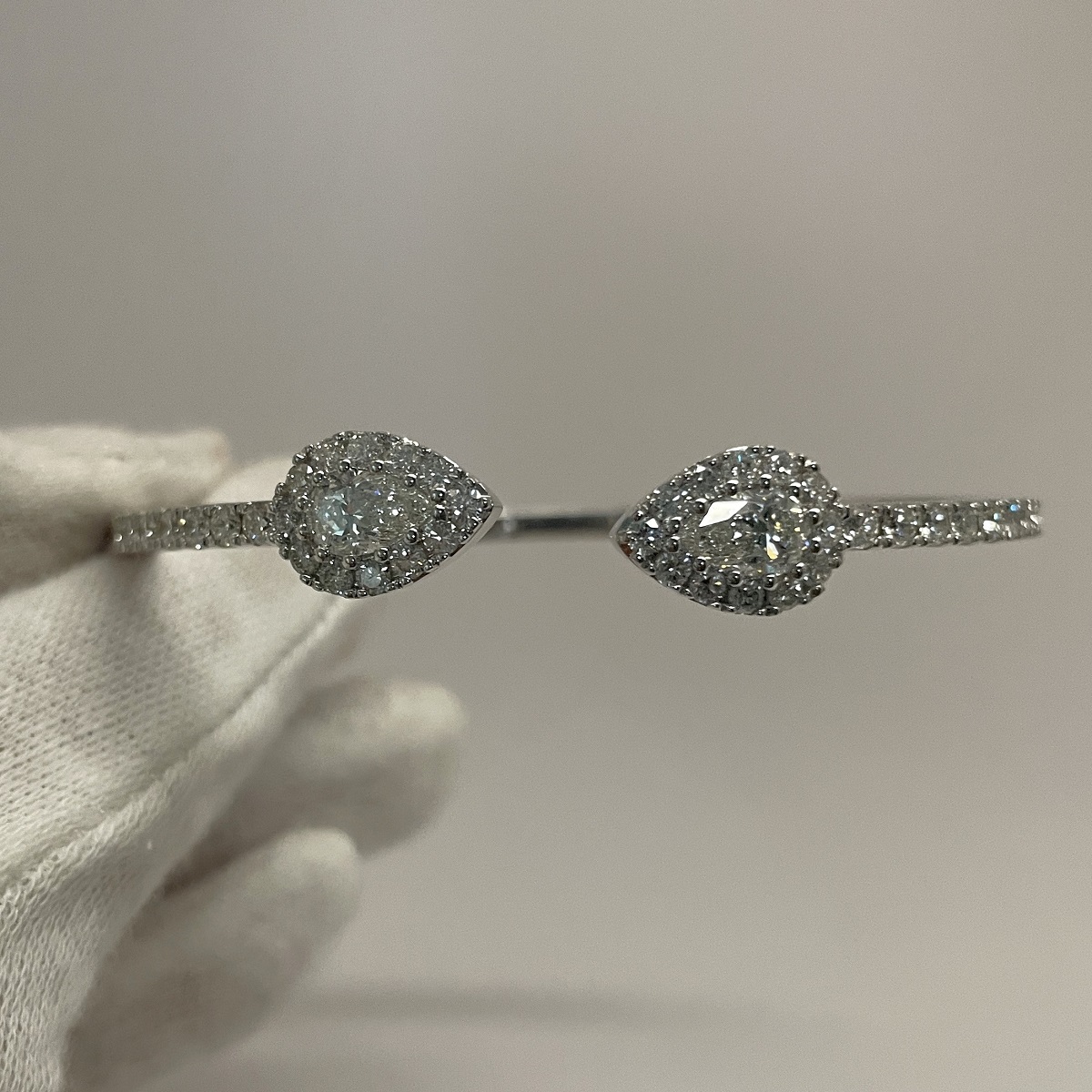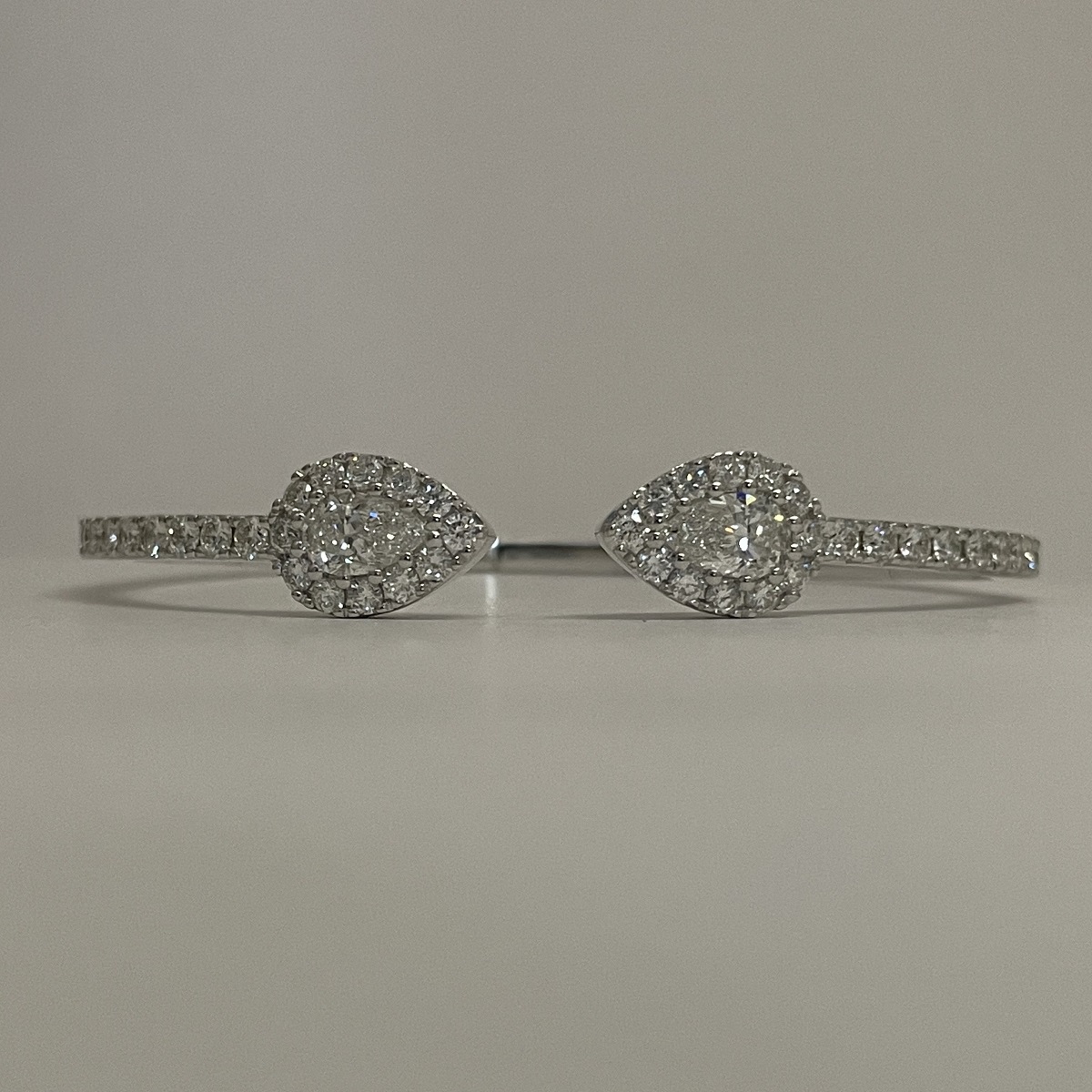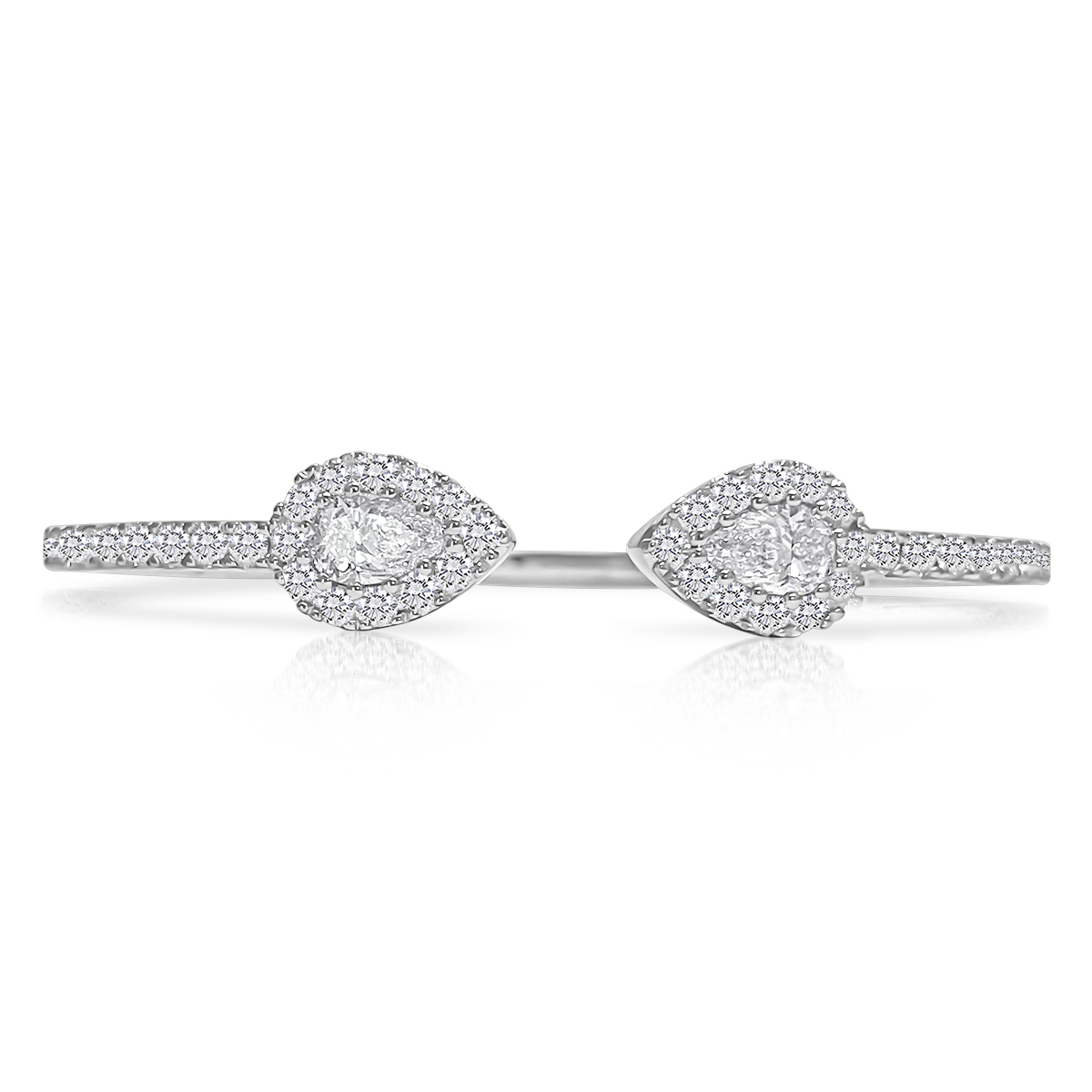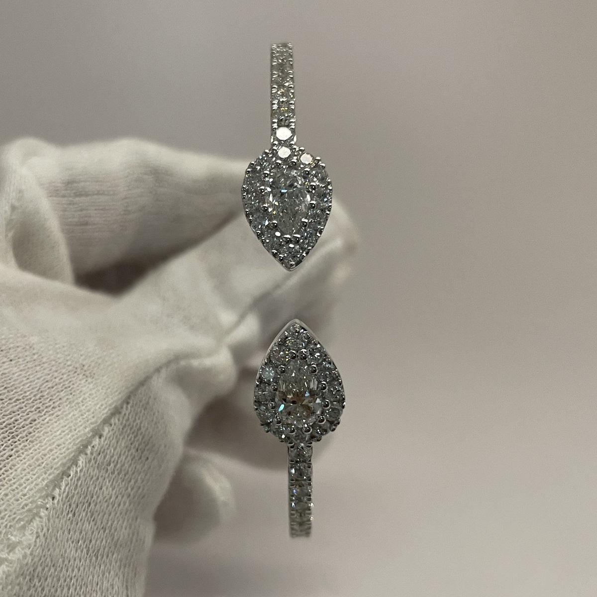 Tags 14k White, Bracelet, Cluster, cuff, Diamond, Halo, Open Bracelet, Pear Shape