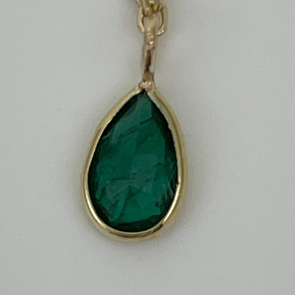 Tags 14k Yellow, bezel, Chain, Earring, Emerald, Pear Shape