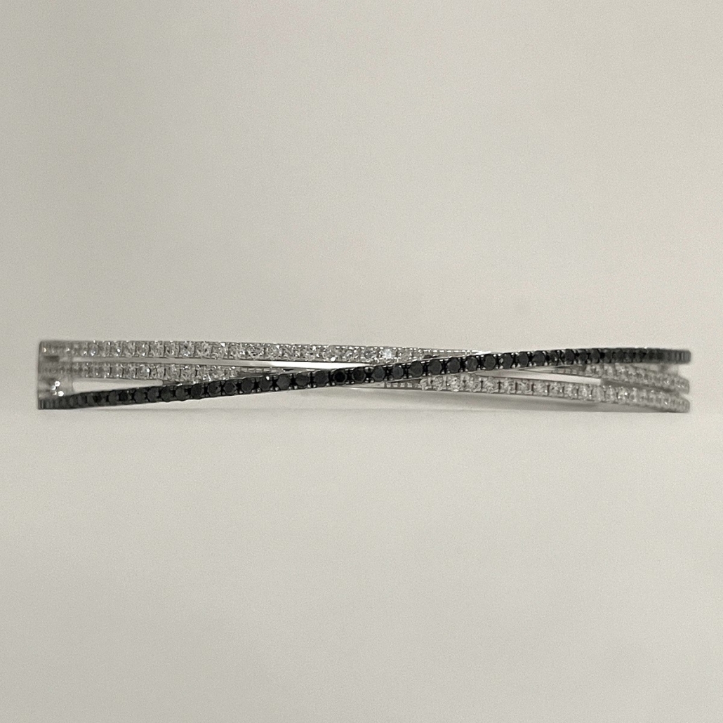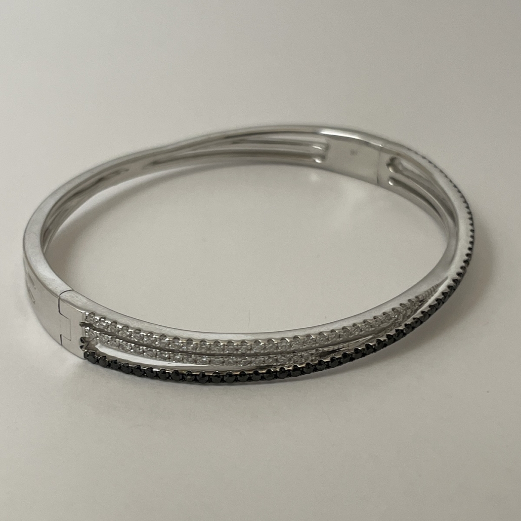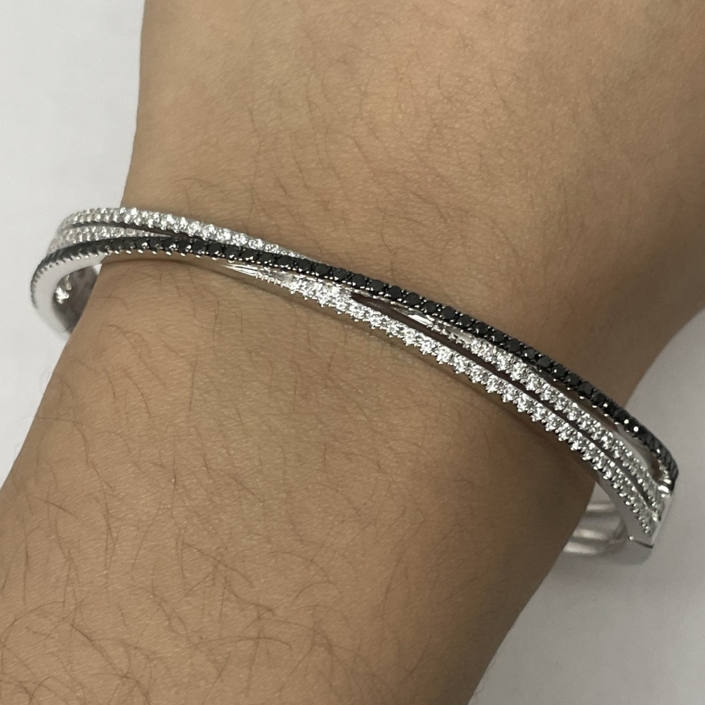 Tags 14k White, Bangle, Black, Bracelet, Diamond, Fancy, X Shape