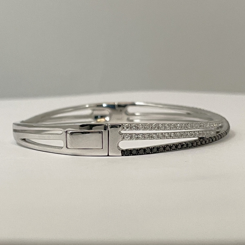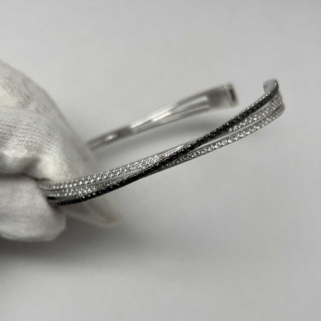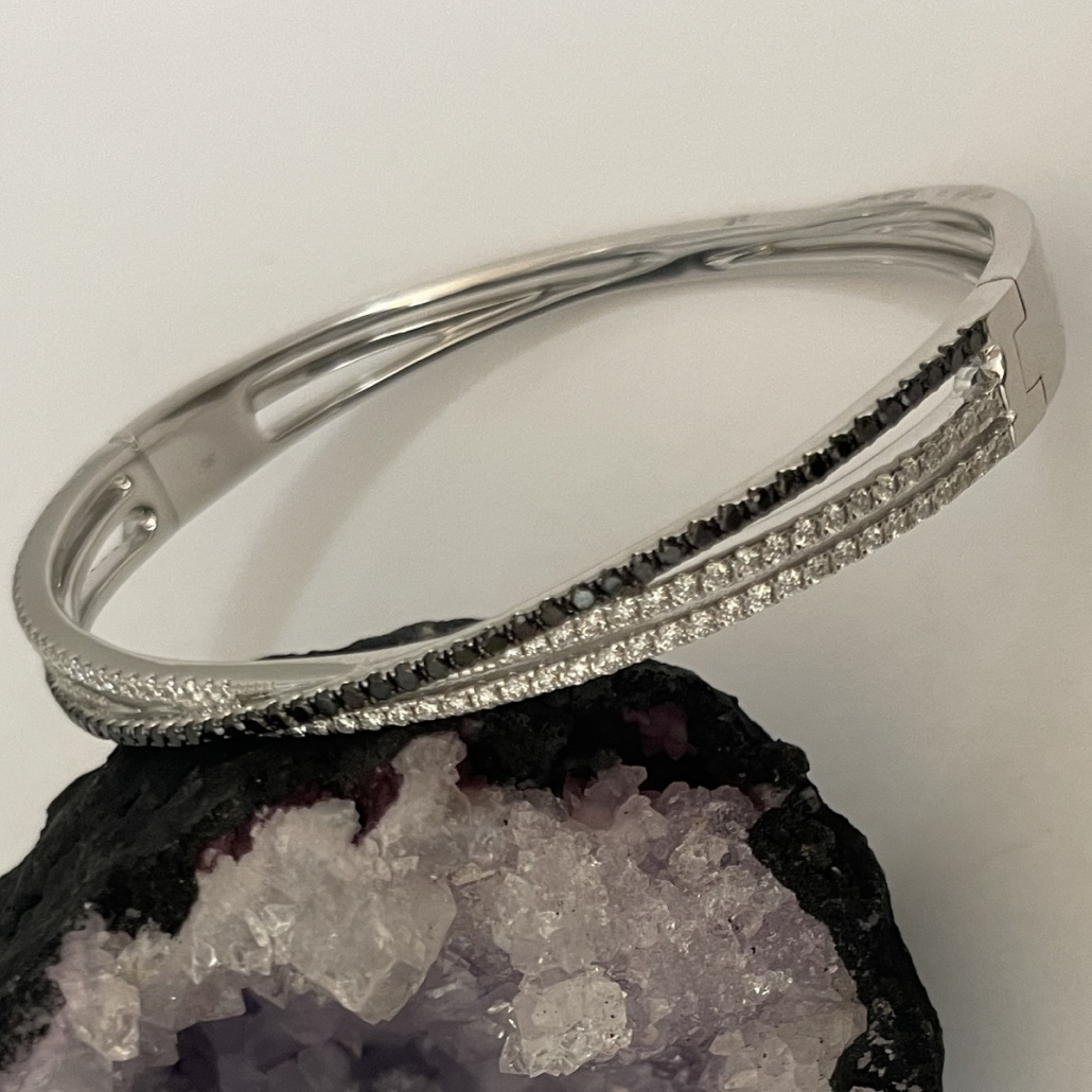 Tags 14k White, Bangle, Black, Bracelet, Diamond, Fancy, X Shape