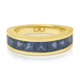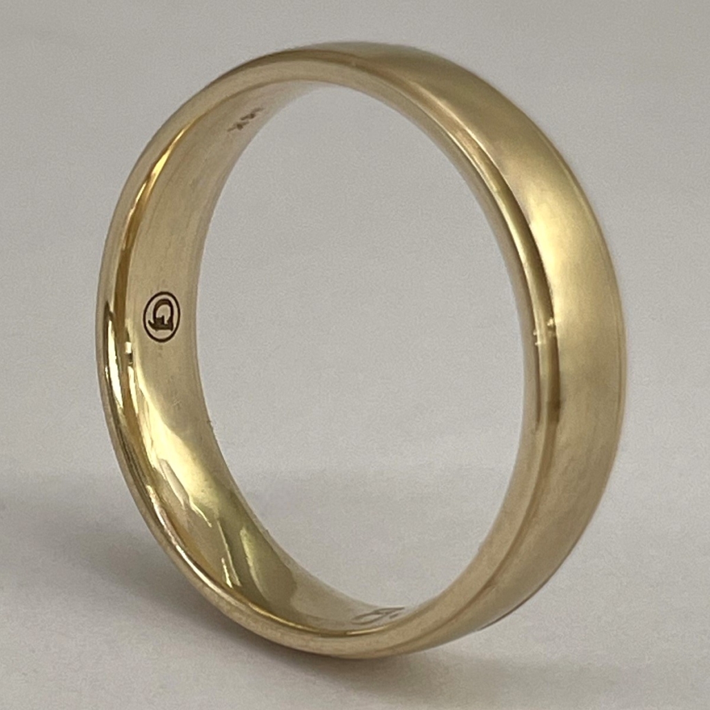 This ring is made with 14k yellow gold and two ridge lines at top and bottom.