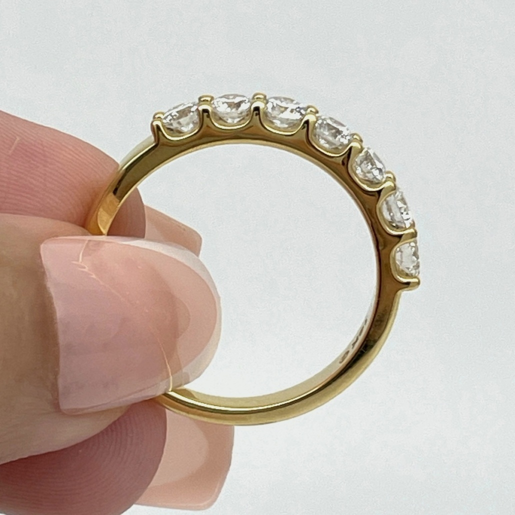 This is what refined luxury looks like seven radiant diamonds, a golden arc, and the confidence that comes with timeless style.
