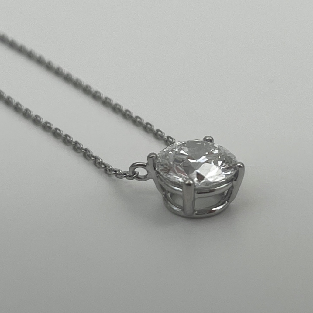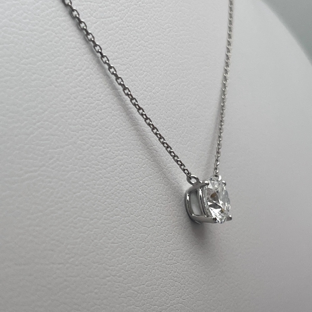 A classic 14K white gold solitaire necklace — simple, traditional, and beautifully made.