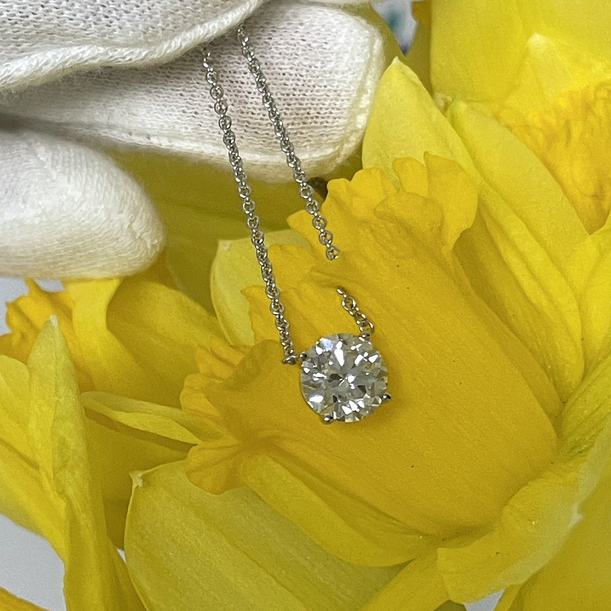 Tags 14k White, Basket Set, Cable Chain, Classic, Diamond, Four Prong, Necklace, Pendant, solitaire, Traditional