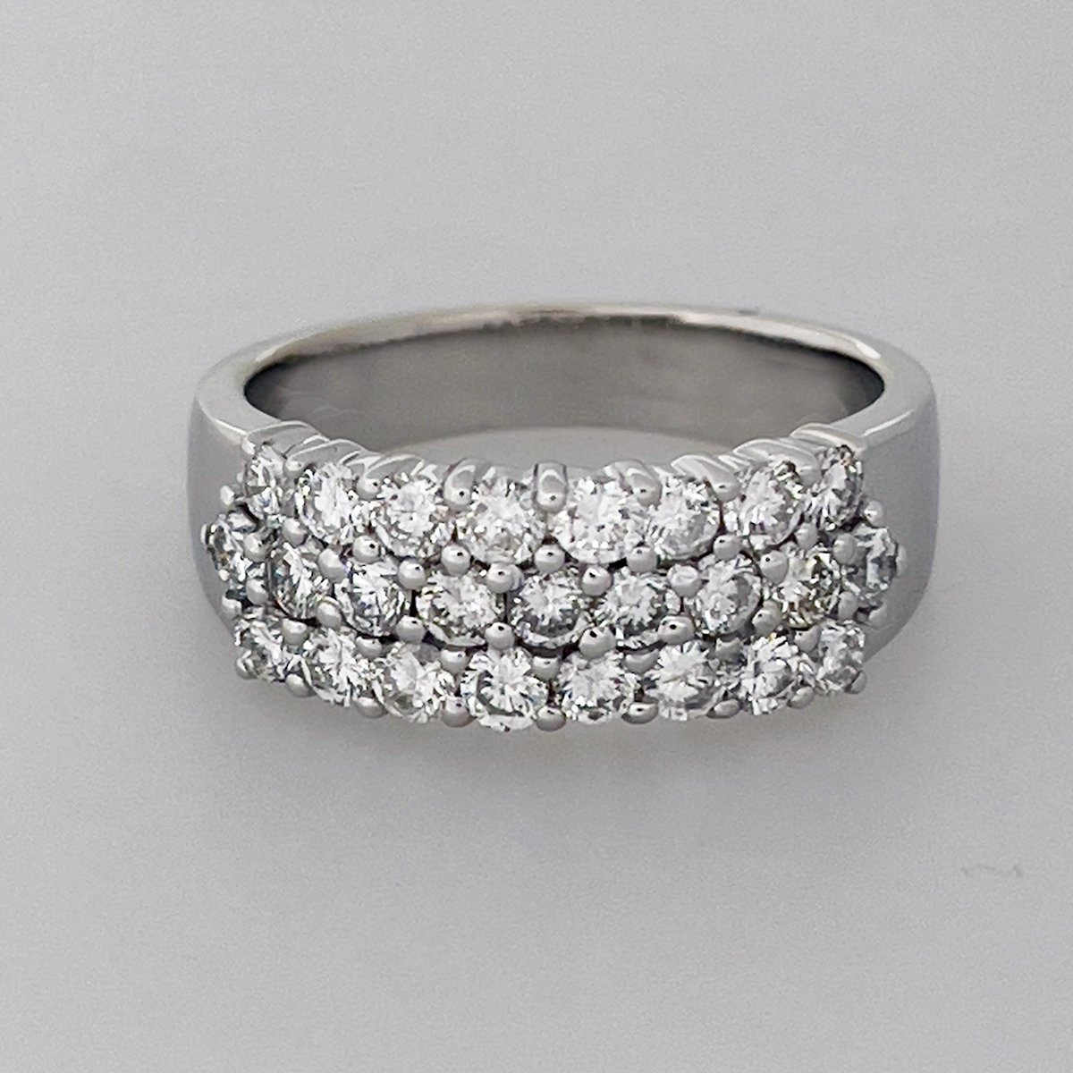 Tags Diamond and White Gold Wedding Band, Diamond Rolls Ring, Diamond Three Lines Ring, Multi-Row Diamond Band, Three Line Diamonds, Three Row Band, White Gold Diamond Cluster Ring, White Gold Diamond Roll Ring, White Gold Diamond Rolls