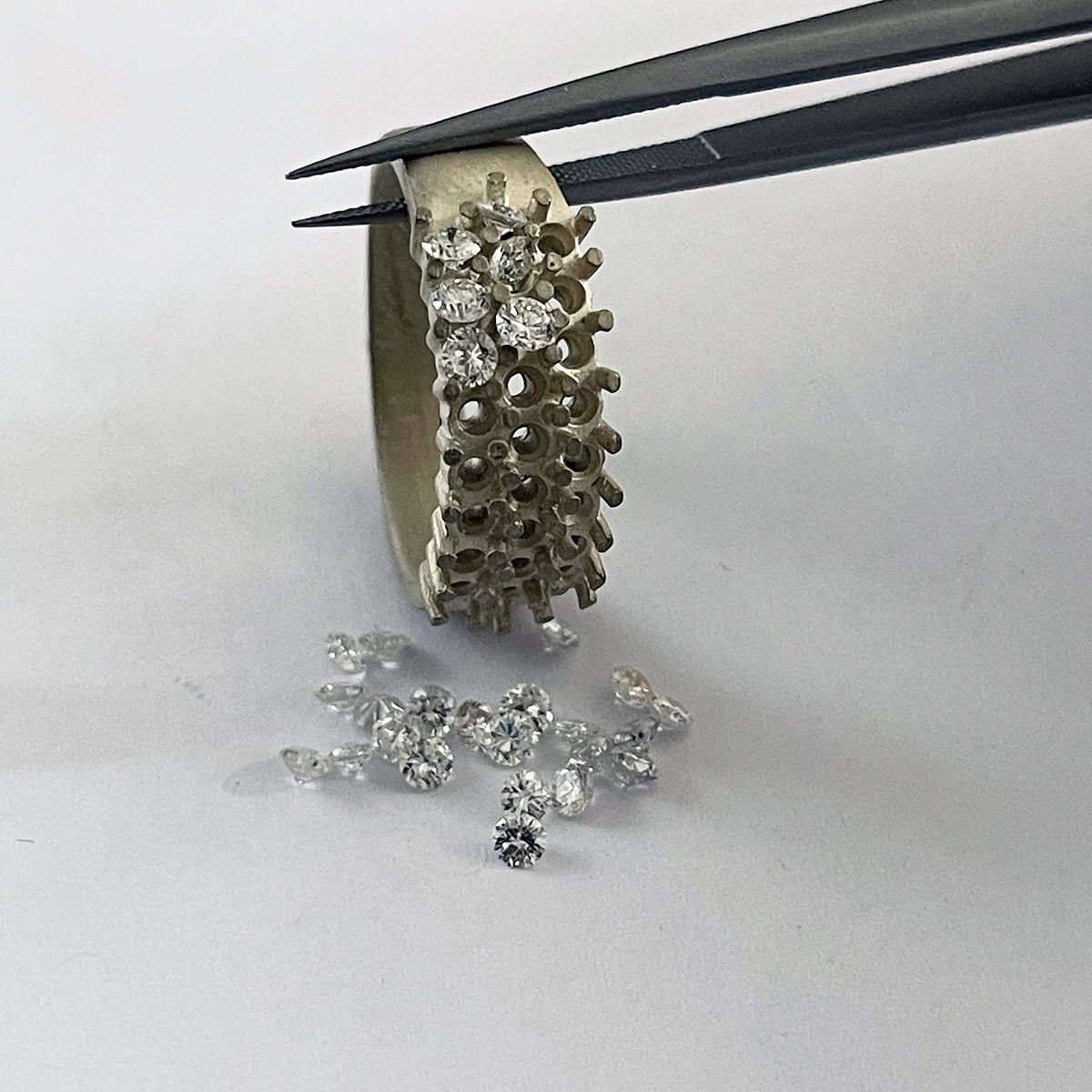 Three Rows Of Gleaming Diamonds Set Into A White Gold Shank Make For An Eye-Catching Custom Ring.