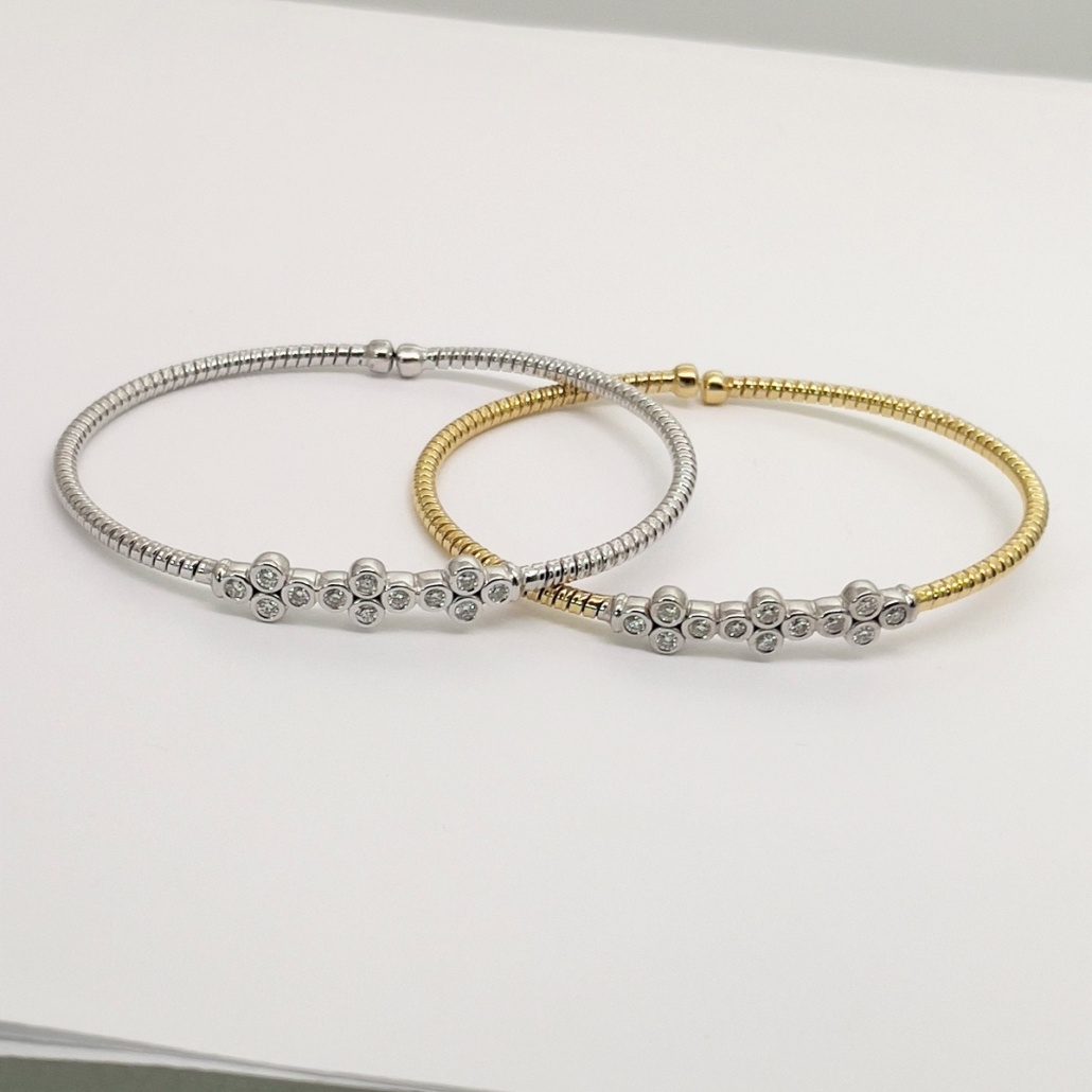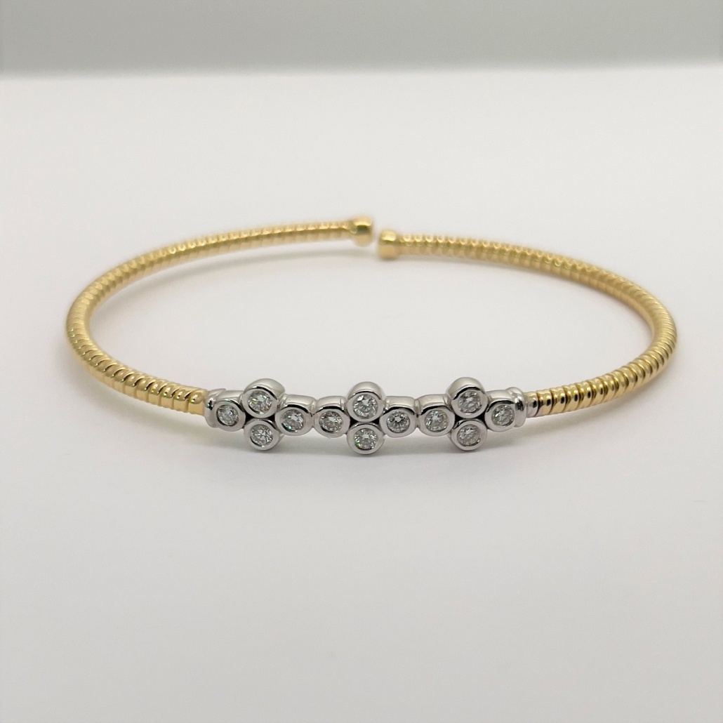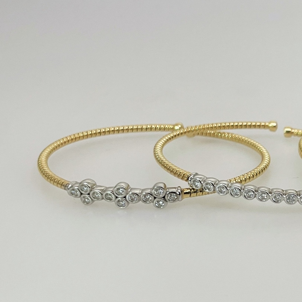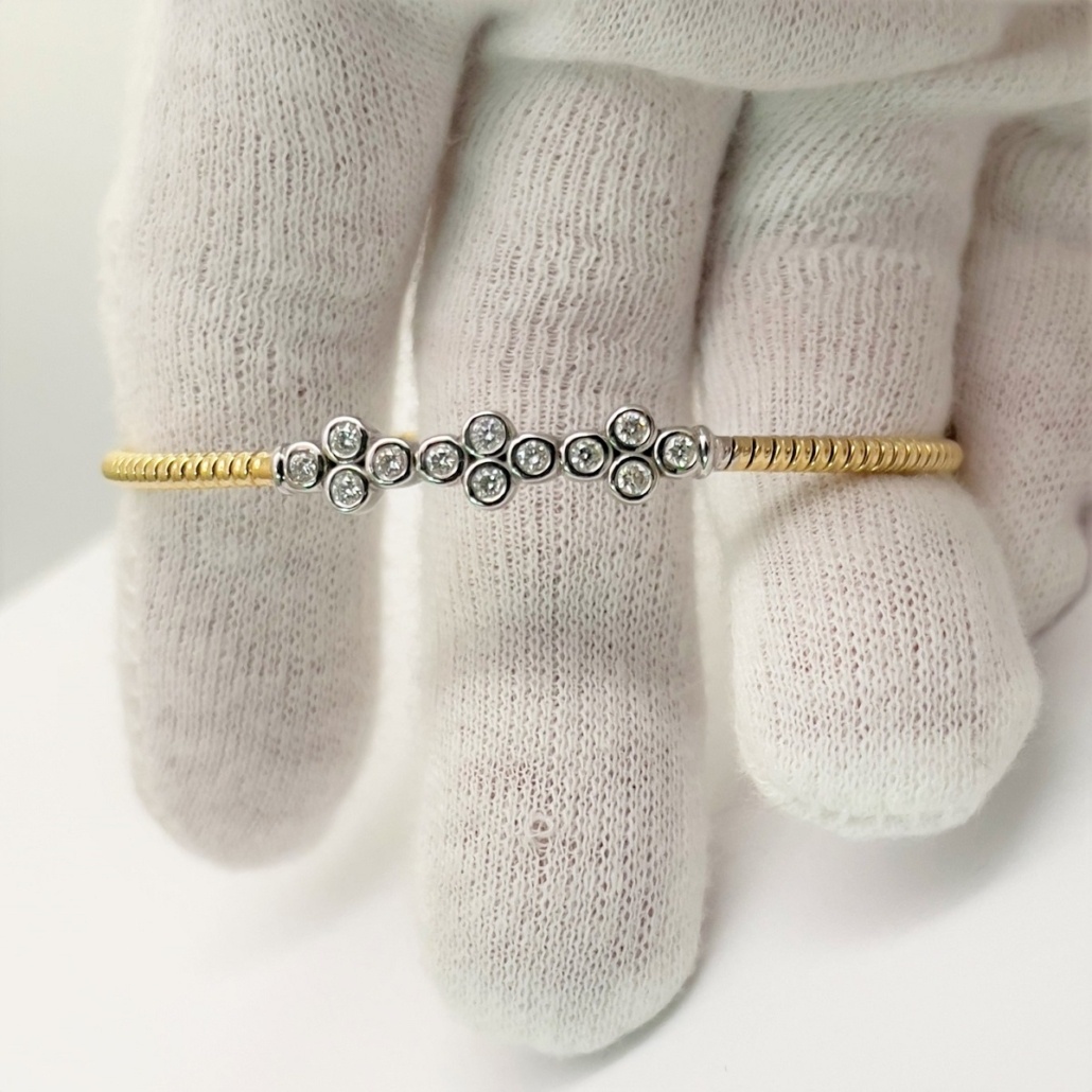 18k Yellow Gold Bangle Bracelet, With 18k White Gold Bezel Set Diamonds